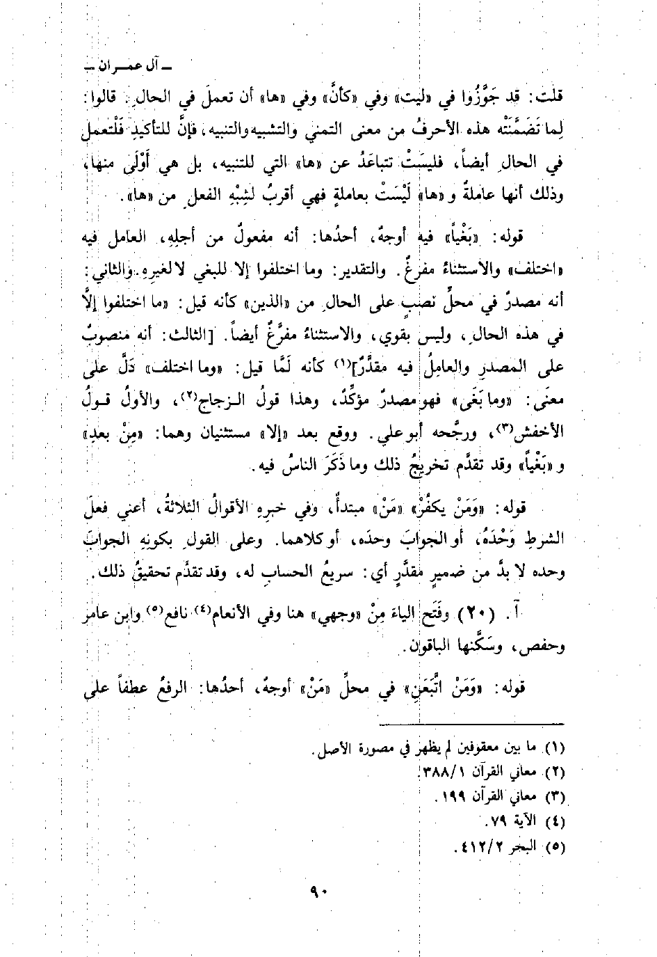 قوله: {بَغْياً} فيه أوجهٌ، أحدُها: أنه مفعولٌ من أجلِهِ، العامل فيه «اختلف» والاستثناءُ مفرغٌ. والتقدير: وما اختلفوا إلا للبغي لا لغيرِهِ. والثاني: أنه مصدرٌ في محلِّ نصبٍ على الحالِ من «الذين» كأنه قيل: «ما اختلفوا إلاَّ في هذه الحالِ، وليس بقوي، والاستثناءُ مفرَّغٌ أيضاً. [الثالث: أنه منصوبٌ على المصدرِ والعامِلُ فيه مقدَّرٌ] كأنه لَمَّا قيل:» وما اختلف «دَلَّ على معنَى:» وما بَغَى «فهو مصدرٌ مؤكِّدٌ، وهذا قولُ الزجاج، والأولُ قولُ الأخفش، ورجَّحه أبو علي. ووقع بعد» إلا «مستثنيان وهما:» مِنْ بعدِ «و» بَغْياً «وقد تقدَّم تخريجُ ذلك وما ذَكَرَ الناسُ فيه.
