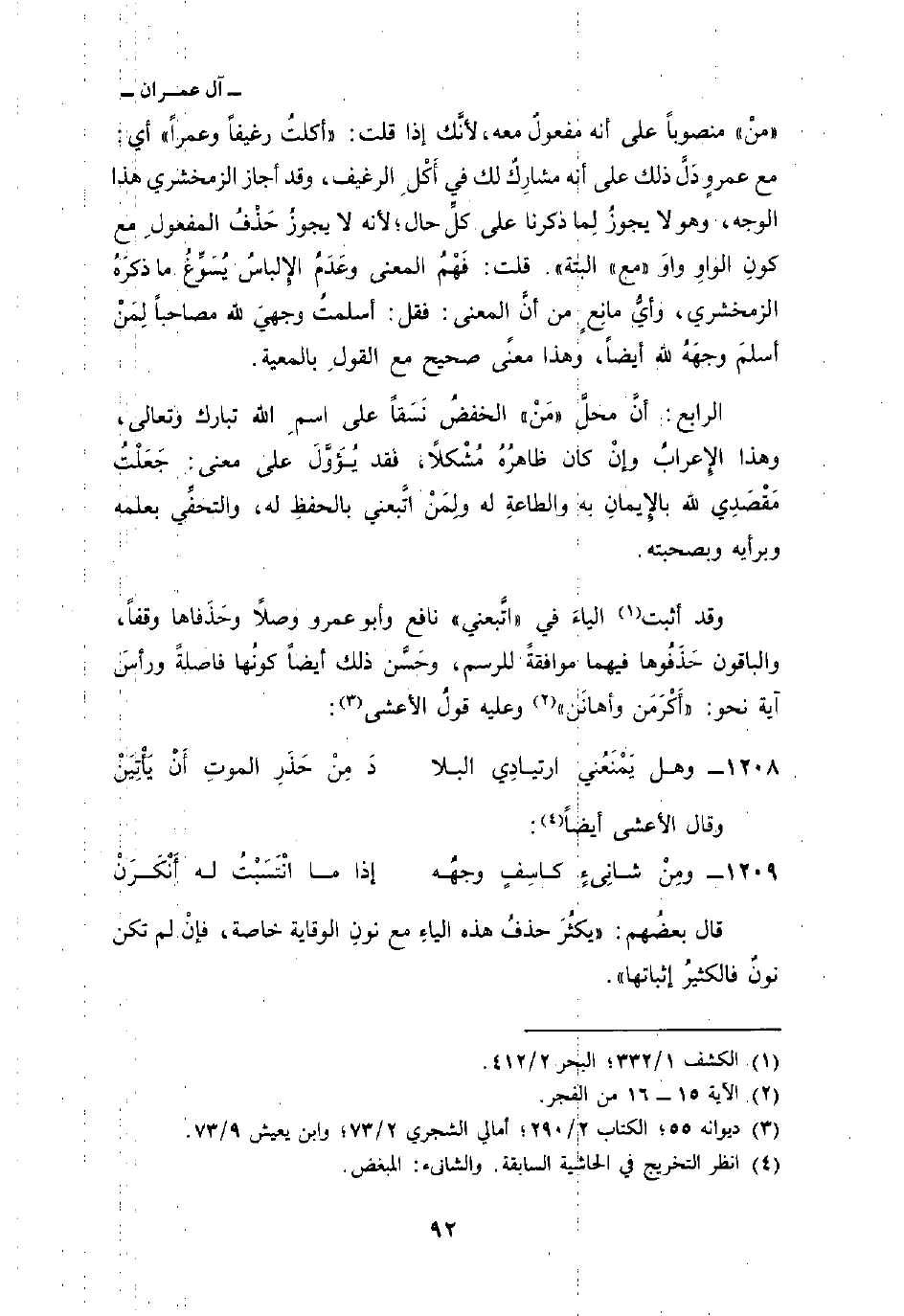 الرابع: أنَّ محلَّ» مَنْ «الخفضُ نَسَقاً على اسمِ الله تبارك وتعالى، وهذا الإِعرابُ وإنْ كان ظاهرُهُ مُشْكلاً، فقد يُؤَوَّلَ على معنى: جَعَلْتُ مَقْصَدِي لله بالإِيمانِ به والطاعةِ له ولِمَنْ اتَّبعني بالحفظِ له، والتحفِّي بعلمه وبرأيه وبصحبته.