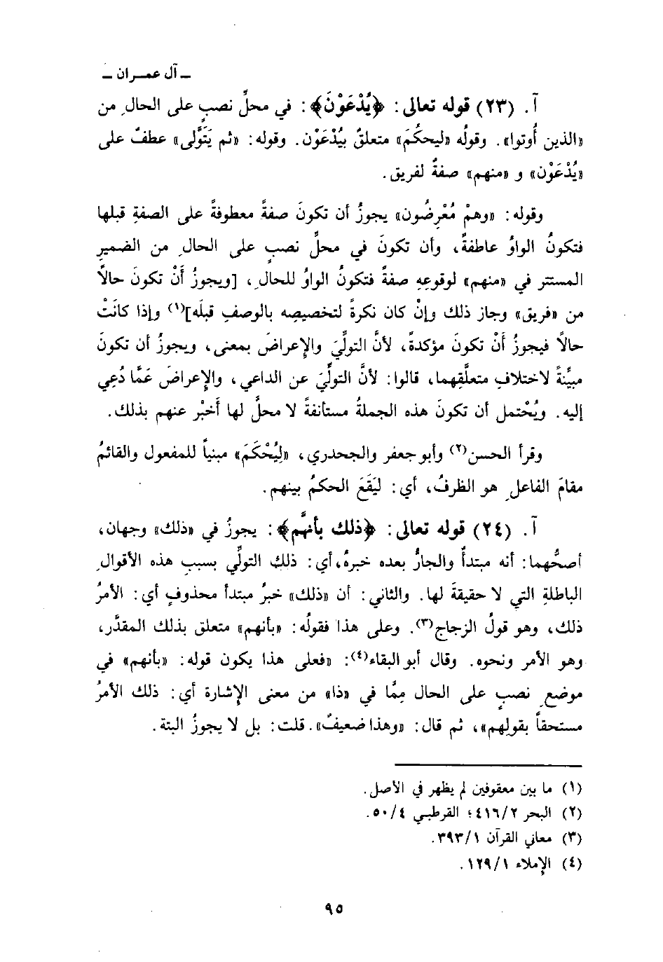 قوله تعالى: {يُدْعَوْنَ} : في محلِّ نصب على الحالِ من «الذين أُوتوا» . وقولُه «ليحكُمَ» متعلقٌ بيُدْعَوْن. وقوله: «ثم يَتَوَّلى» عطفٌ على «يُدْعَوْن» و «منهم» صفةٌ لفريق.