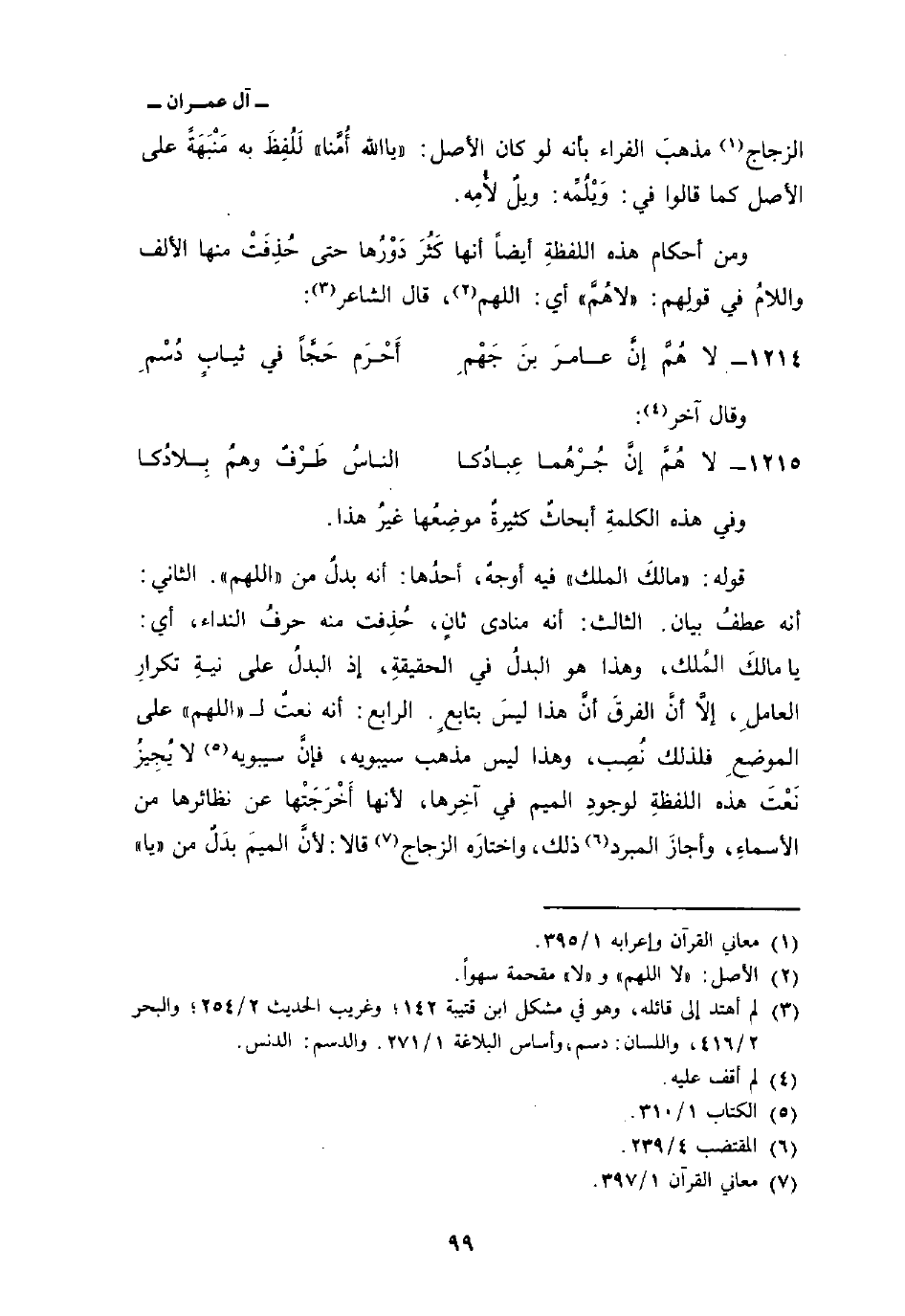 الزجاج مذهبَ الفراء بأنه لو كان الأصل:» يا لله أُمَّنا «لَلُفِظَ به مَنْبَهَةً على الأصل كما قالوا في: وَيْلُمِّه: ويلٌ لأُمِه.
