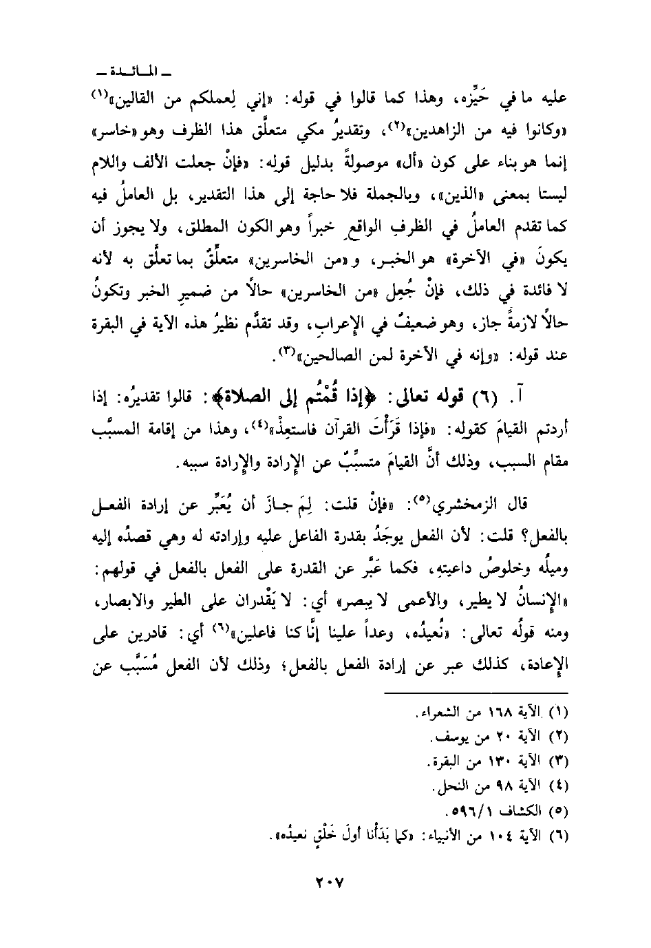 قال الزمخشري: «فإنْ قلت: لِمَ جازَ أن يُعَبِّر عن إرادة الفعل بالفعل» قلت: لأن الفعل يوجَدُ بقدرة الفاعل عليه وإرادته له وهي قصدُه إليه وميلُه وخلوصُ داعيتهِ، فكما غَبَّر عن القدرة على الفعل بالفعل في قولهم: «الإِنسانُ لا يطير، والأعمى لا يبصر» أي: لا يَقْدران على الطير والابصار، ومنه قولُه تعالى: {نُّعِيدُهُ وَعْداً عَلَيْنَآ إِنَّا كُنَّا فَاعِلِينَ} [الأنبياء: 104] أي: قادرين على الإِعادة، كذلك عبر عن إرادة الفعل بالفعل؛ وذلك لأن الفعل مُسَبِّب عن