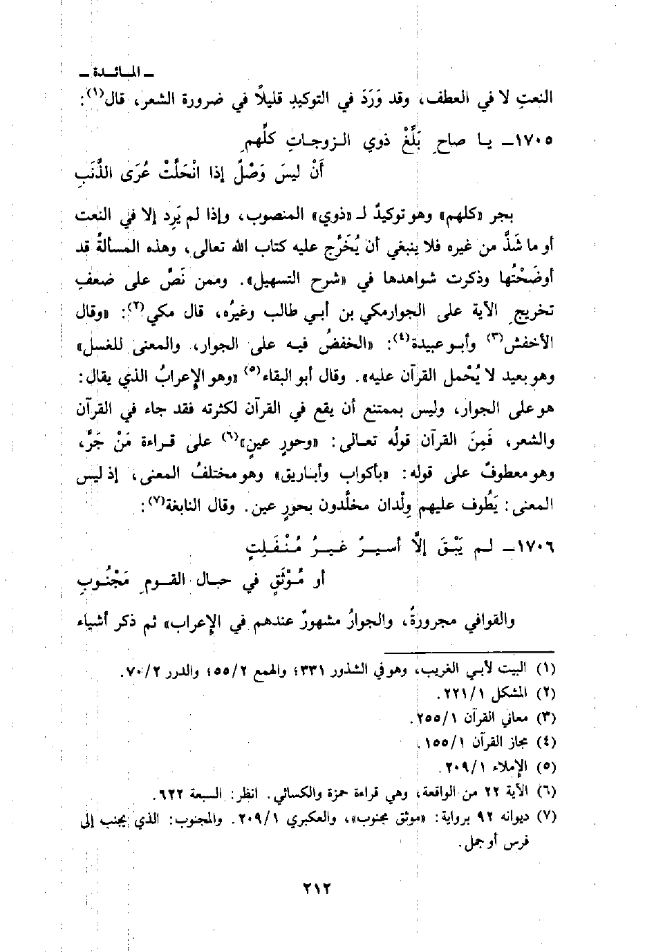 والقوافي مجرورةٌ، والجوارُ مشهورٌ عندهم في الإِعراب» ثم ذكر أشياء