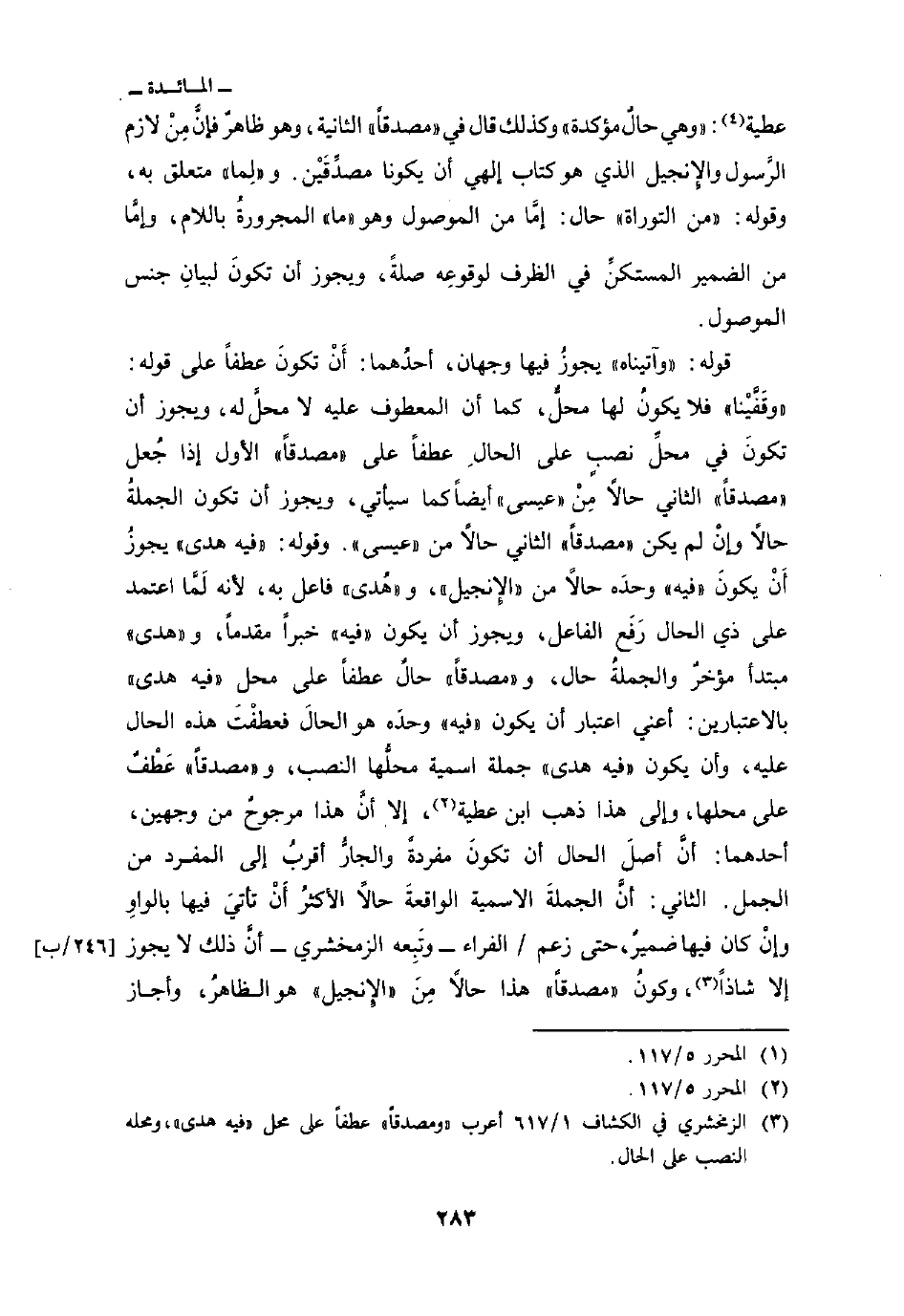 عطية «وهي حالٌ مؤكدة» وكذلك قال في «مصدقاً» الثانية، وهو ظاهرٌ فإنَّ مِنْ لازم الرَّسول والإِنجيل الذي هو كتاب إلهي أن يكونا مصدِّقَيْن.