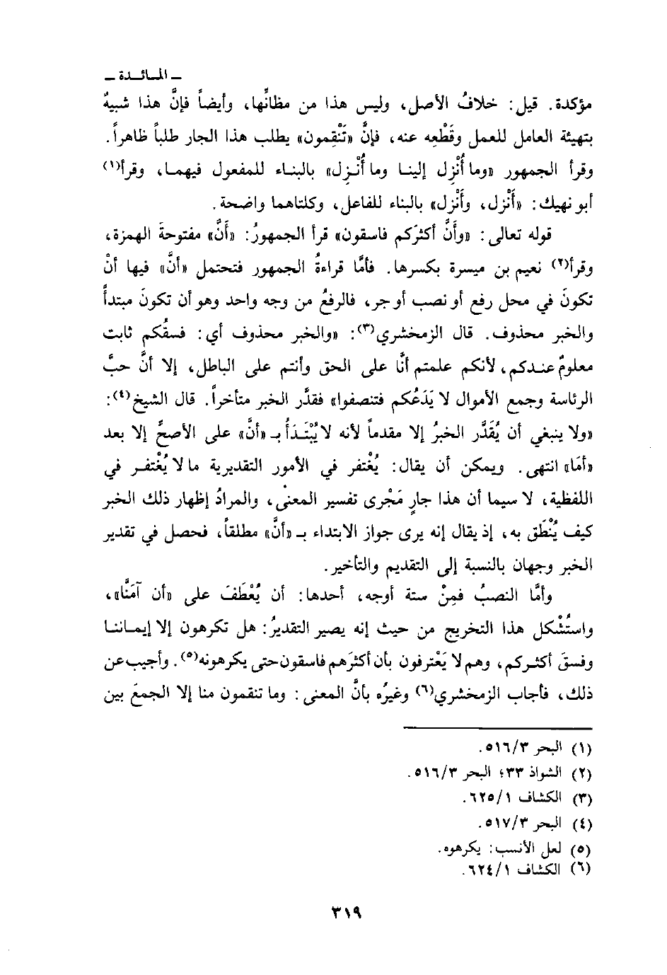 وأمَّا النصبُ فمِنْ ستة أوجه، أحدها: أن يُعْطَفُ على» أن آمَنَّا «، واستُشْكل هذا التخريج من حيث إنه يصير التقديرُ: هل تكرهون إلا إيماننا وفسقَ أكثرهم، وهم لا يَعْترفون بأن أكثرَهم فاسقون حتى يكرهونه وأجيب عن ذلك، فأجاب الزمخشري وغيرُه بأنَّ المعنى: وما تنقمون منا إلا الجمعَ بين