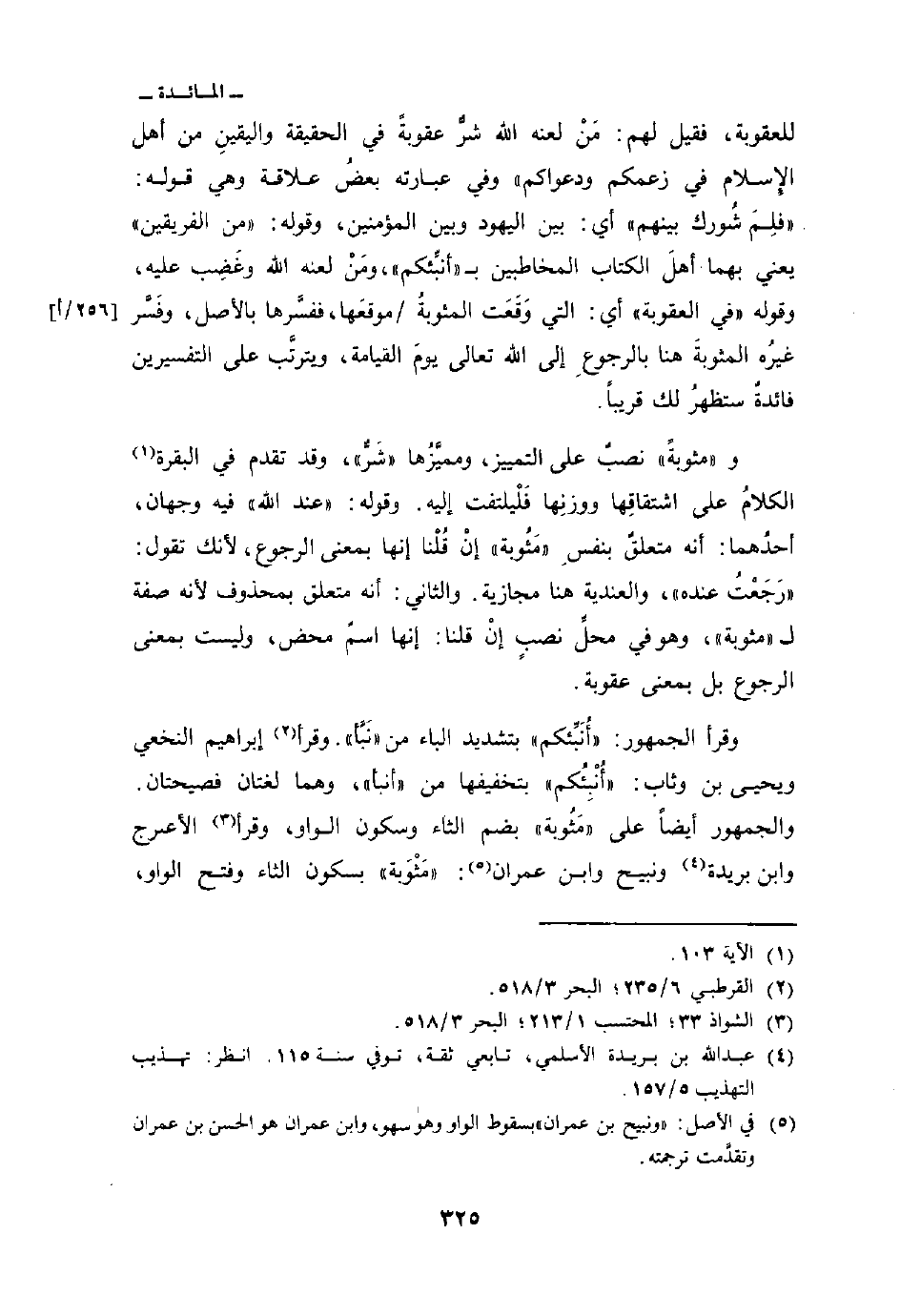 للعقوبة، فقيل لهم: مَنْ لعنه الله شرٌّ عقوبةً في الحقيقة واليقينِ من أهل الإِسلام في زعمكم ودعواكم «وفي عبارته بعضُ علاقة وهي قوله:» فلِمَ شُورك بينهم «أي: بين اليهود وبين المؤمنين، وقوله:» من الفريقين «يعني بهما أهلَ الكتاب المخاطبين ب» أنبِّئكم «ومَنْ لعنه الله وغَضِب عليه، وقوله» في العقوبة «أي: التي وَقَعَت المثوبةُ / موقعَها، ففسَّرها بالأصل، وفَسَّر غيرُه المثوبةَ هنا بالرجوعِ إلى الله تعالى يومَ القيامة، ويترتَّب على التفسيرين فائدةٌ ستظهرُ لك قريباً.