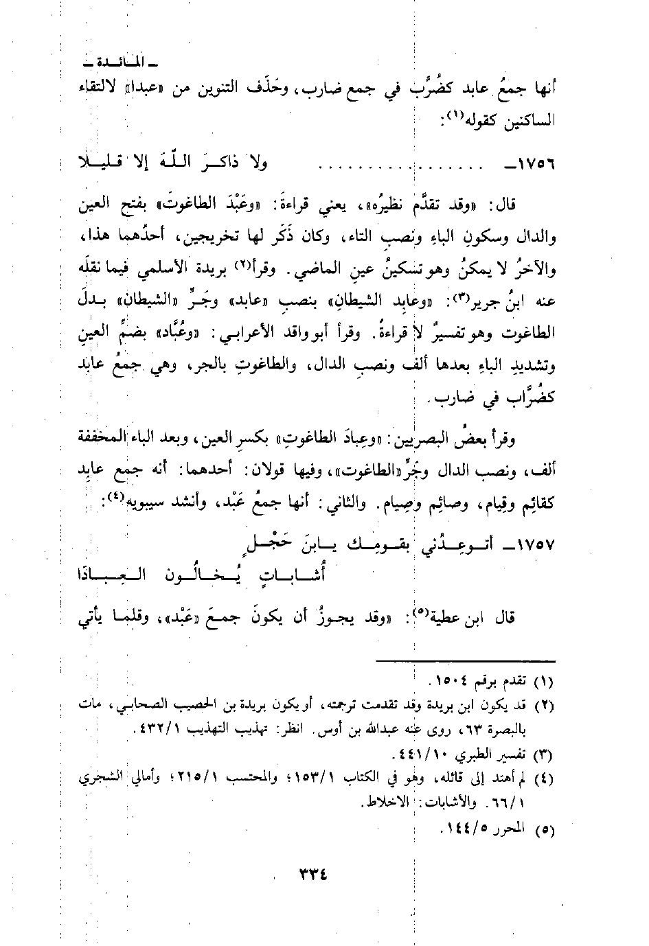 وقرأ بعضُ البصريين: «وعِبادَ الطاغوتِ» بكسرِ العين، وبعد الباء المخففة ألف، ونصب الدال وجَرِّ «الطاغوت» وفيها قولان: أحدهما: أنه جمع عابِد كقائِم وقِيام، وصائِم وصِيام. والثاني: أنها جمعُ عَبْد، وأنشد سيبويه: