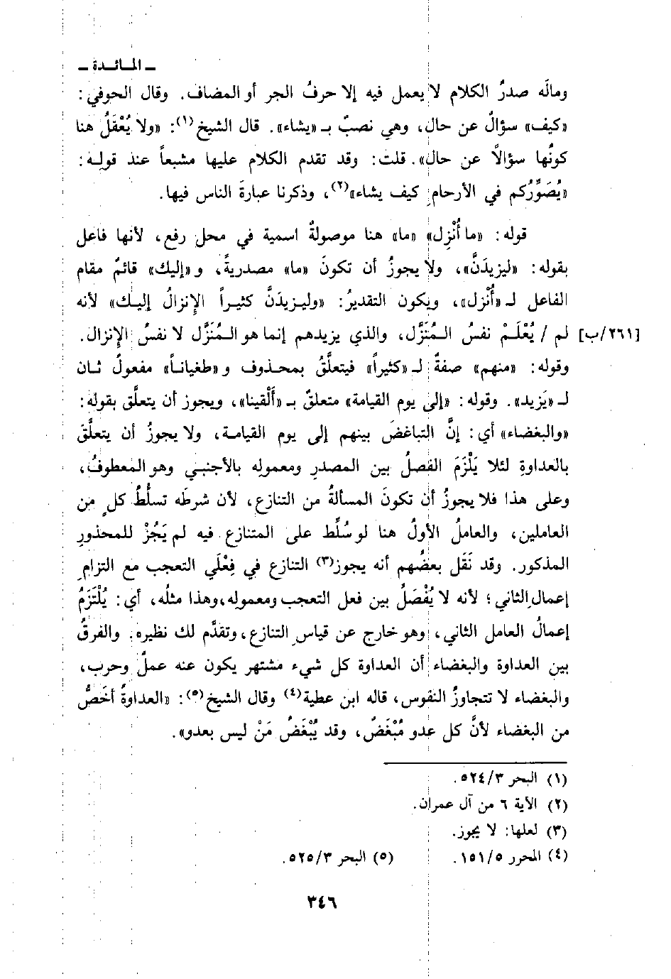 وقوله: «منهم» صفةٌ ل «كثيراً» فيتعلَّقُ بمحذوف و «طغياناً» مفعولٌ ثان ل «يَزيد» وقوله: {إلى يَوْمِ القيامة} متعلقٌ ب «أَلْقينا» ، ويجوز أن يتعلَّق بقوله: «والبغضاء» اي: إنَّ التباغضَ بينهم إلى يوم القيامة، ولا يجوزُ أن يتعلَّقَ بالعداوةِ لئلا يَلْزَمَ الفصلُ بين المصدرِ ومعمولِه بالأجنبي وهو المعطوفُ، وعلى هذا فلا يجوزُ أن تكونَ المسألةُ من التنازع، لأن شرطَه تسلُّطُ كلٍ من العاملين، والعاملُ الأولُ هنا لو سُلِّط على المتنازع فيه لم يَجُزْ للمحذورِ المذكور. وقد نَقَل بعضُهم أنه يجوز التنازع في فِعْلَي التعجب مع التزامِ إعمالِ الثاني؛ لأنه لا يُفْصَلِّ بين فعل التعجب ومعمولِه، وهذا مثلُه، أي: يُلْتَزَمُ إعمالُ العامل الثاني، وهو خارج عن قياسِ التنازع، وتقدَّم لك نظيره. والفرقُ بين العداوة والبغضاء أن العداوة كل شيء مشتهر يكون عنه عملٌ وحرب، والبغضاء لا تتجاوزُ النفوس، قال ابن عطية وقال الشيخ: «العداوةُ أخَصُّ من البغضاء لأنَّ كل عدو مُبْغَضٌ، وقد يُبْغَضُ مَنْ ليس بعدو» .