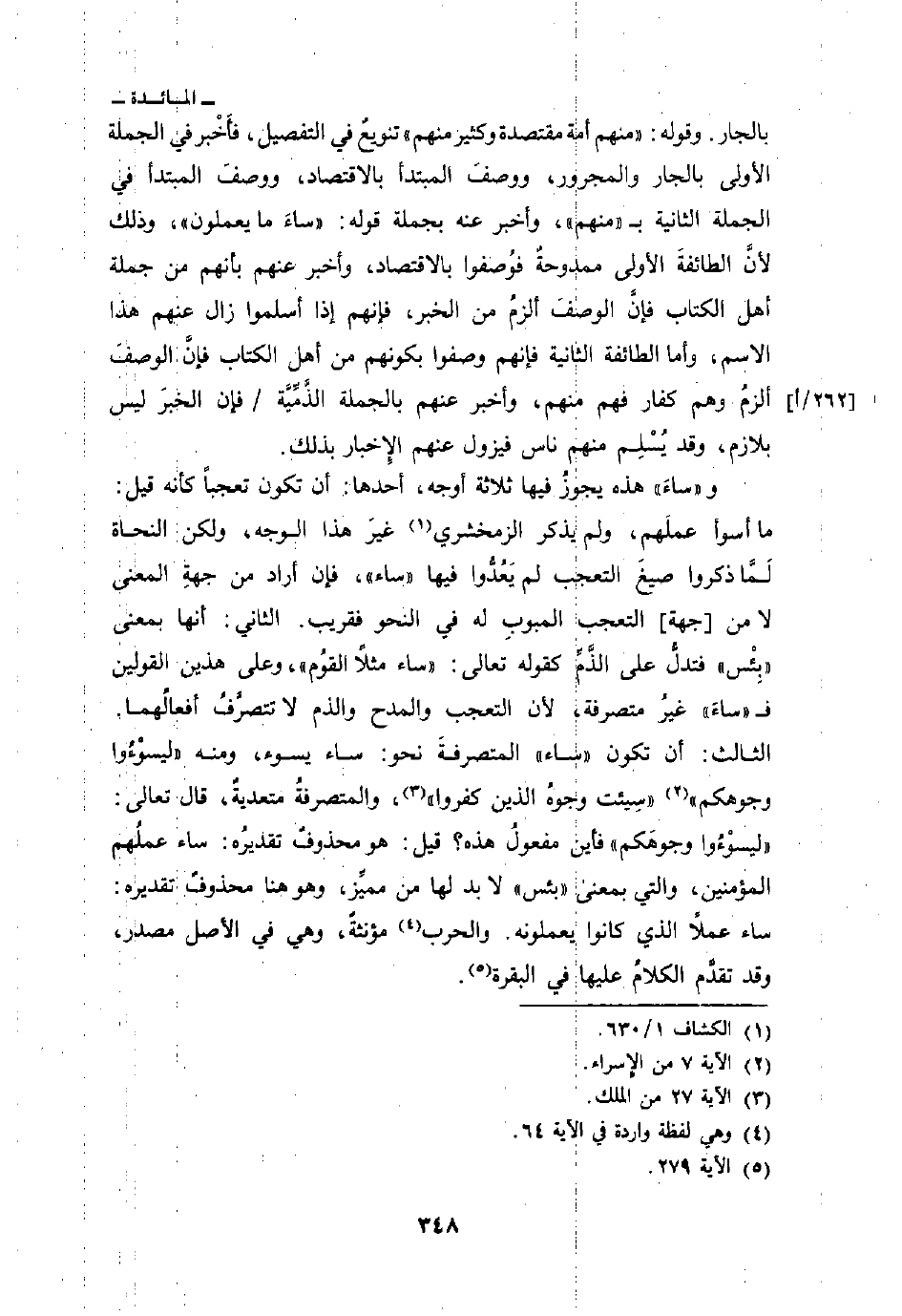 بالجار. وقوله: {مِّنْهُمْ أُمَّةٌ مُّقْتَصِدَةٌ وَكَثِيرٌ مِّنْهُمْ} تنويعٌ في التفصيل، فأَخْبر في الجملة الأولى بالجار والمجرور، ووصفَ المبتدأ بالاقتصاد، ووصفَ المبتدأ في الجملة الثانية ب «منهم» ، وأخبر عنه بجملة قوله: {سَآءَ مَا يَعْمَلُونَ} وذلك لأنَّ الطائفةَ الأولى ممدوحةٌ فُوصفوا بالاقتصاد، وأخبر عنهم بأنهم من جملة أهل الكتاب فإنَّ الوصفَ ألزمُ من الخبر، فإنهم إذا أسلموا زال عنهم هذا الاسم، وأما الطائفة الثانية فإنهم وصفوا بكونهم من أهل الكتاب فإنَّ الوصفَ ألزمُ وهم كفار فهم منهم، وأخبر عنهم بالجملة الذَّمِّيَّة فإن الخبرَ ليس بلازم، وقد يُسْلِم منهم ناس فيزول عنهم الإِخبار بذلك.