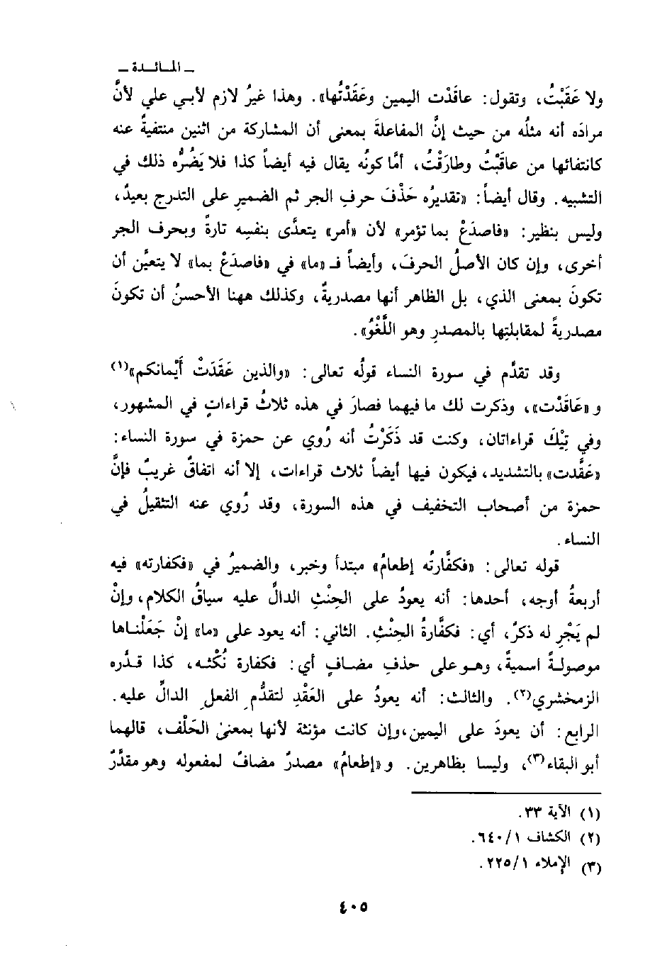 وقد تقدَّم في سورة النساء قولُه تعالى: {والذين عَقَدَتْ أَيْمَانُكُمْ} [الآية: 33] و «عَاقَدْت» وذكرت لك ما فيهما فصارَ في ثلاثُ قراءاتٍ في المشهور، وفي تِيْكَ قراءاتان، وكنت قد ذَكَرْتُ أنه رُوي عن حمزة في سورة النساء: «عَقَّدت» بالتشديد، فيكون فيها أيضاً ثلاث قراءات، إلا أنه اتفاقٌ غريبٌ فإنَّ حمزة من أصحاب التخفيف في هذه السورة، وقد رُوي عنه التثقيلُ في النساء.