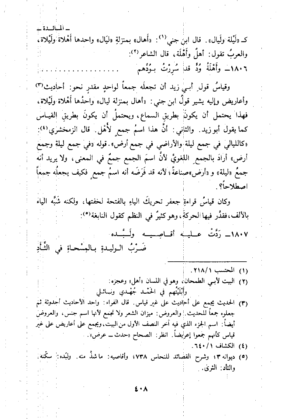 وقياسُ قولِ أبي زيد أن تجعلَه جمعاً لواحدٍ مقدرٍ نحو: أحاديث وأعاريض وإليه يشير قولُ ابن جني:» اهل بمنزلة ليال «واحدُها أَهْلاة ولَيْلاة، فهذا يحتمل أن يكون بطريقِ السماع، ويحتملُ أن يكونَ بطريقِ القياس كما يقول أبو زيد.