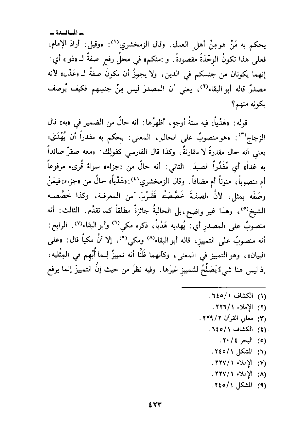 قوله: {هَدْياً} فيه ستةُ أوجهٍ، أظهرُها: أنه حالٌ من الضمير في» به «قال الزجاج:» وهو منصوبٌ على الحالِ، المعنى: يحكم به مقدراً أن يُهْدَى «يعني أنه حال مقدرةٌ ولا مقارنةٌ، وكذا قال الفارسي كقولِك:» معه صقرٌ صائداً به غداً «أي مُقَدِّراً الصيدَ.