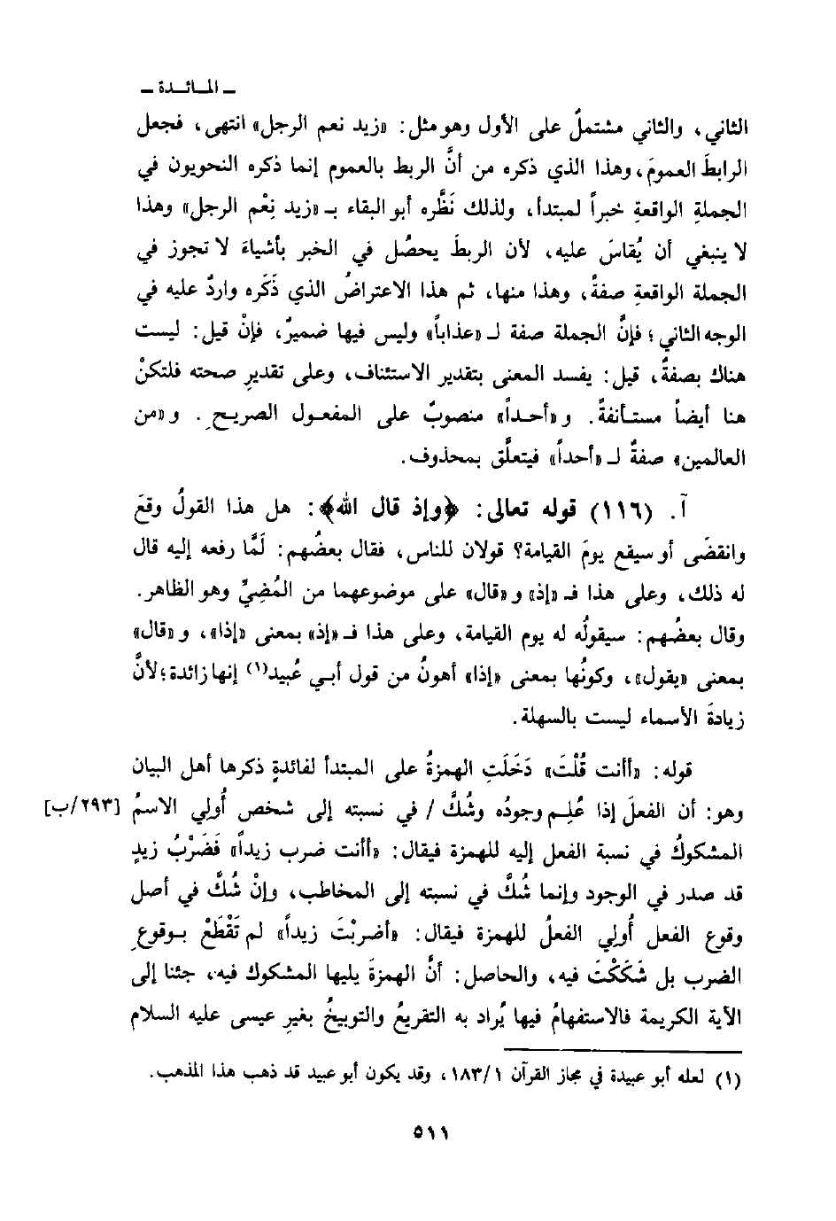 قوله تعالى: {وَإِذْ قَالَ الله} هل هذا القولُ وقعَ وانقضَى أو سيقع يومَ القيامة؟ قولان للناس، فقال بعضُم: لَمَّا رفعه إليه قال له ذلك، وعلى هذا ف «إذ» و «قال» على موضوعهما من المُضِيِّ وهو الظاهر. وقال بعضُهم: سيقولُه له يوم القيامة وعلى هذا ف «إذا» بمعنى «إذا» ، «وقال» بمعنى «يقول» وكونُها بمعنى «إذا» أهونُ من قول أبي عُبيد إنها زائدة؛ لأنَّ زيادةَ الأسماء ليست بالسهلة.