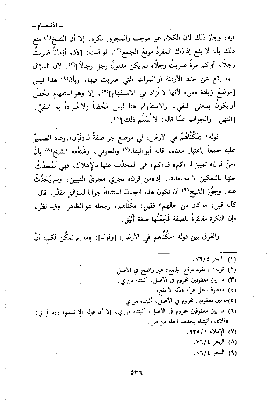 قوله: {مَّكَّنَّاهُمْ فِي الأرض} في موضع جر صفةً ل «قَرْن» وعاد الضميرُ عليه جمعاً باعتبار معناه، قاله أبو البقاء والحوفي، وضَعَّفه الشيخ بأنَّ «مِنْ قرن» تمييز ل «كم» ف «كم» هي المحدِّث عنها بالإِهلاك، فهي المُحَدَّثُ عنها بالتمكين لا ما بعدها، إذ «من قرن» يجري مجرى التبيين، ولم يُحَدَّثْ عنه. وجَوَّز الشيخ أن تكون هذه الجملة استنئافاً جواباً لسؤالٍ مقدَّر، قال كأنه قيل: ما كان من حالهم؟ فقيل: مكَّنَّاهم، وجعله هو الظاهر. وفي نظر، فإن النكرة مفتقرةٌ للصفة فَجَعْلُها صفةً أَلْيَق.