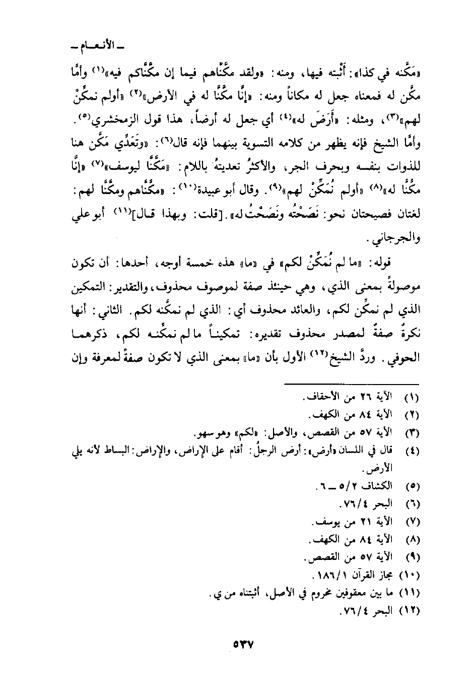 قوله: {مَا لَمْ نُمَكِّن لَّكُمْ} في» ما «هذه خمسة أوجه، أحدها: أن تكون موصولةً بمعنى الذي، وهي حينئذ صفة لموصوف محذوف، والتقدير: التمكين الذي لم نمكِّن لكم، والعائد محذوف أي: الذي لم نمكَّنه لكم. الثاني: أنها نكرةٌ صفةٌ لمصدر محذوف تقديره: تمكيناً ما لم نمكِّنه لكم، ذكرهما الحوفي. وردَّ الشيخ الأول بأن» ما «بمعنى الذي لا تكون صفةً لمعرفة وإن
