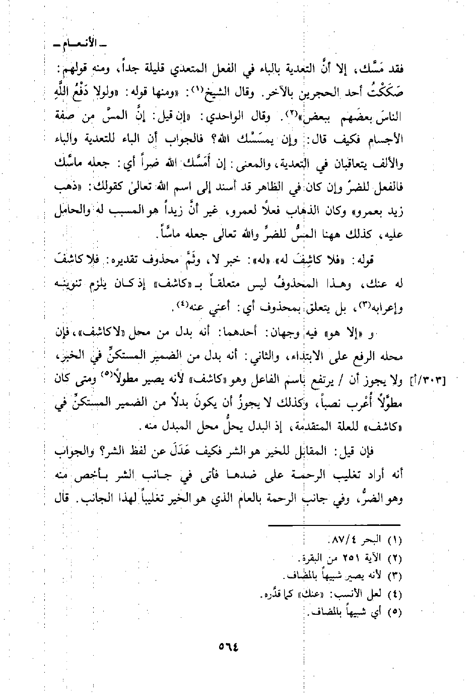 فقد مَسَّك، إلا أنَّ التعدية بالباء في الفعل المتعدي قليلة جداً، ومنه قولهم: صَكَكْتُ أحد الحجرين بالآخر. وقال الشيخ: «ومنها قوله:» ومنها قوله: {وَلَوْلاَ دَفْعُ الله الناس بَعْضَهُمْ بِبَعْضٍ} [البقرة: 251] . وقال الواحدي: «إن قيل: إنَّ المسَّ من صفة الأجسام فكيف قال: وإن يمسَسْك الله؟ فالجواب أن الباء للتعدية والباء والألف يتعاقبان في التعدية، والمعنى: إن أَمَسَّك الله ضراً أي: جعله ماسَّك فالفعل للضرّ وإن كان في الظاهر قد أسند إلى اسم الله تعالى كقولك:» ذهب زيد بعمرو «وكان الذهاب فعلاً لعمرو، غير أنَّ زيداً هو المسبب له والحامل عليه، كذلك ههنا المسُّ للضرِّ والله تعالى جعله ماسَّاً.