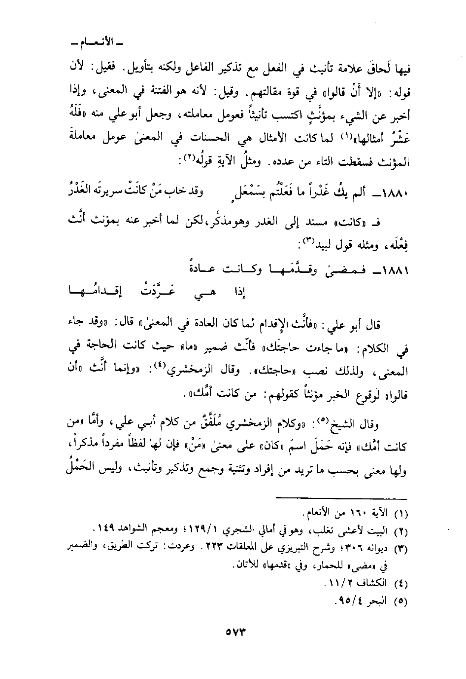 وقال الشيخ:» وكلام الزمخشري مُلَفَّقٌ من كلام أبي علي، وأمَّا «من كانت أمَّك» فإنه حَمَلَ اسمَ «كان» على معنى «مَنْ» فإن لها لفظاً مفرداً مذكراً، ولها معنى بحسب ما تريد من إفارد وتثنية وجمع وتذكير وتأنيث، وليس الحَمْلُ