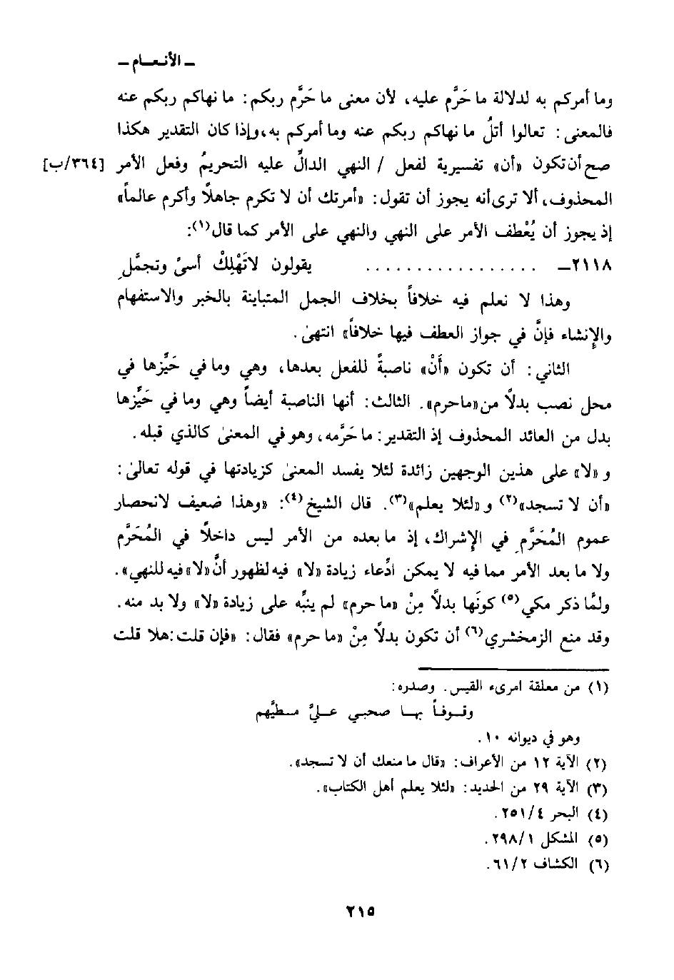 الثاني: أن تكون» أَنْ «ناصبةً للفعل بعدها، وهي وما في حَيِّزها في محل نصب بدلاً من» ما حرم «. الثالث: أنها الناصبة أيضاً وهي وما في حَيِّزها بدل من العائد المحذوف إذ التقدير: ما حَرَّمه، وهو في المعنى كالذي قبله. و» لا «على هذين الوجهين زائدة لئلا يفسد المعنى كزيادتها في قوله تعالى: {أَلاَّ تَسْجُدَ} [الأعراف: 12] و {لِّئَلاَّ يَعْلَمَ} [الحديد: 29] . قال الشيخ:» وهذا ضعيف لانحصار عموم المُحَرَّمِ في الإِشراك، إذ ما بعده من الأمر ليس داخلاً في المُحَرَّم ولا ما بعد الأمر مما فيه لا يمكن ادِّعاء زيادة «لا» فيه لظهور أنَّ «لا» فيه للنهي «. ولمَّا ذكر مكي كونَها بدلاً مِنْ» ما حرم «لم ينبِّه على زيادة» لا «ولا بد منه. وقد منع الزمخشري أن تكون بدلاً مِنْ» ما حرم «فقال:» فإن قلت: هلا قلت