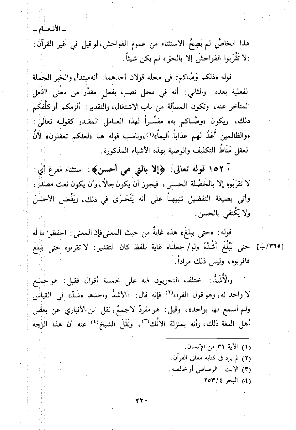هذا الخاصَّ لم يَصِحَّ الاستثناء من عموم الفواحش، لو قيل في غير القرآن: «لا تَقْرَبوا الفواحشَ إلا بالحق» لم يكن شيئاً.
