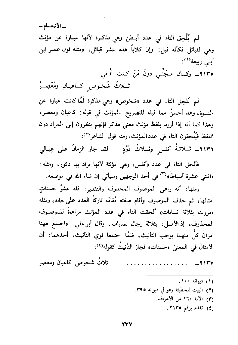 فألحق التاءَ في عدد «أنفس» وهي مؤنثة لأنها يراد بها ذكور، ومثله: {اثنتي عَشْرَةَ أَسْبَاطاً} [الأعراف: 160] في أحد الوجهين وسيأتي إن شاء الله في موضعه.