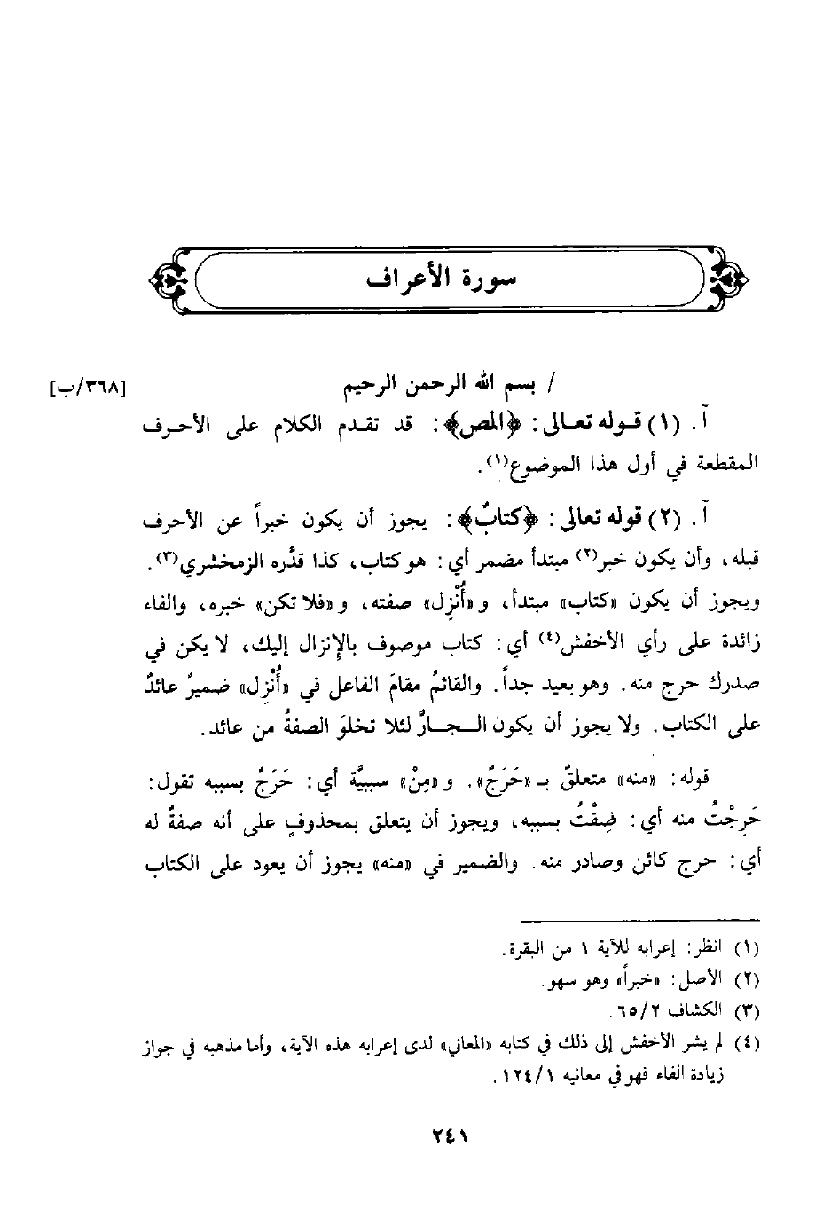 قوله تعالى: {المص} : قد تقدم الكلام على الأحرف المقطعة في أول هذا الموضوع.