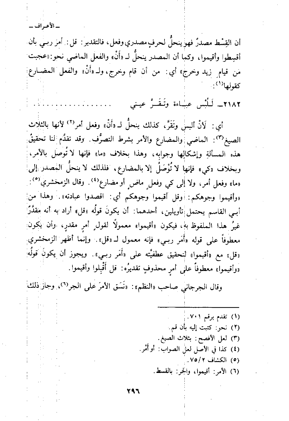 أن القِسْط مصدرٌ فهو ينحلُّ لحرفٍ مصدري وفعل، فالتقدير: قل: أمر ربي بأن أقسِطوا وأقيموا، وكما أن المصدر ينحلُّ ل «أَنْ» والفعل الماضي نحو: «عجبت من قيامِ زيد وخرج» أي: من أن قام وخرج، ول «أَنْ» والفعل المضارع كقولها: