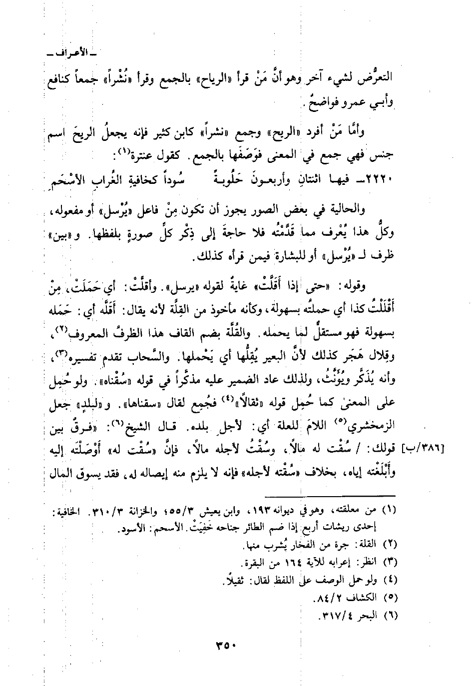 وأمَّا مَنْ أفرد «الريح» وجمع «نشراً» كابن كثير فإنه يجعلُ الريحَ اسم جنس فهي جمع في المعنى فوَصَفَها بالجمع. كقول عنترة: