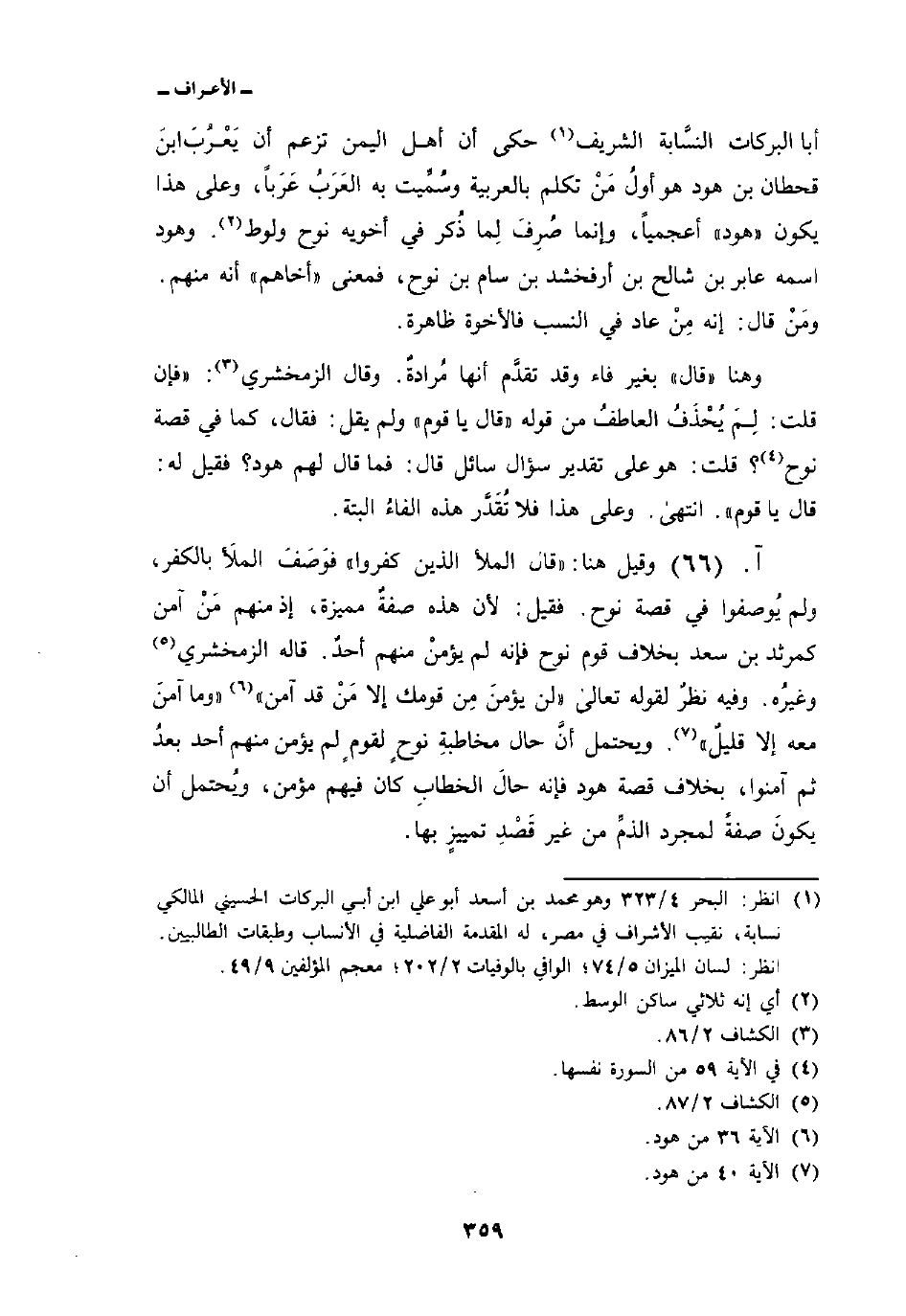 أبا البركات النسَّابة الشريف حكى أن أهل اليمن تزعم أن يَعْرُبَ ابنَ قحطان بن هود هو أولُ مَنْ تكلم بالعربية وسُمِّيت به العَرَبُ عَرَباً، وعلى هذا يكون «هود» أعجمياً، وإنما صُرِفَ لِما ذُكر في أخويه نوح ولوط. وهود اسمه عابر بن شالح بن أرفخشد بن سام بن نوح، فمعنى «أخاهم» أنه منهم. ومَنْ قال: إنه مِنْ عاد في النسب فالأخوة ظاهرة.
