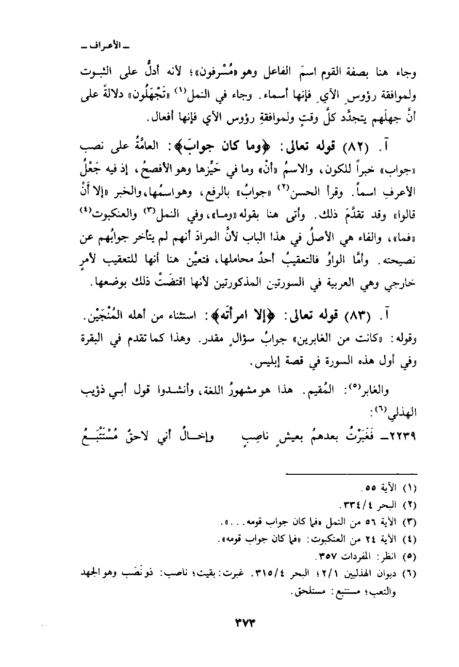 وجاء هنا بصفة القوم اسمَ الفاعل وهو» مُسْرفون «؛ لأنه أدلُّ على الثبوت ولموافقة رؤوسِ الآيِ فإنها أسماء. وجاء في النمل» تَجْهَلُون «دلالةً على أنَّ جهلَهم يتجدَّد كلَّ وقتٍ ولموافقةِ رؤوس الآي فإنها أفعال.