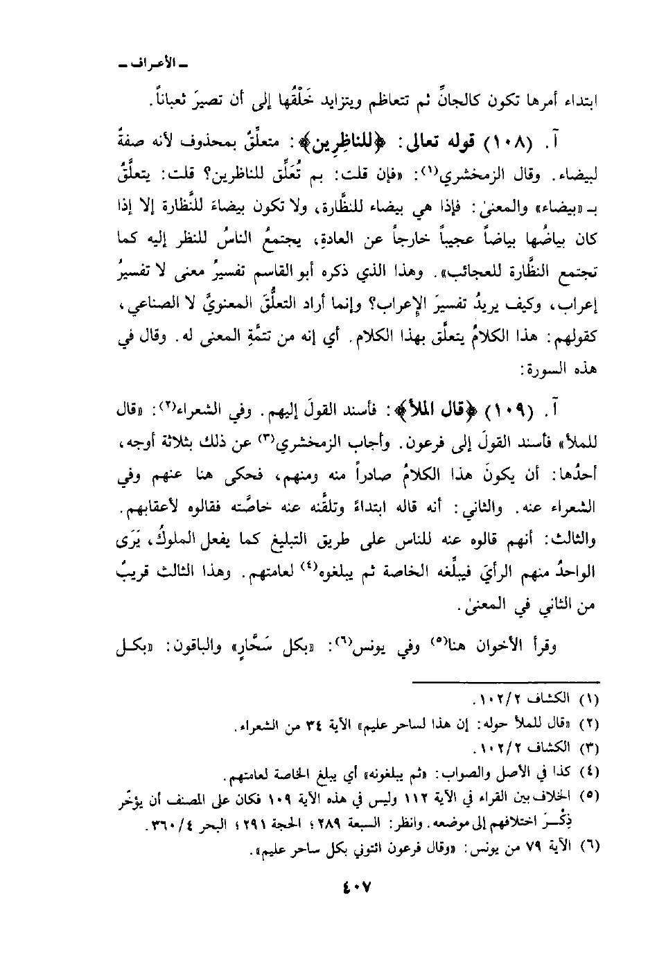 {قَالَ الملأ} : فأسند القولَ إليهم. وفي الشعراء: «قال للملأ» فأسند القولَ إلى فرعون. وأجاب الزمخشري عن ذلك بثلاثة أوجه، أحدُها: أن يكونَ هذا الكلامُ صادراً منه ومنهم، فحكى هنا عنهم وفي الشعراء عنه. والثاني: أنه قاله ابتداءً وتلقَّنه عنه خاصَّته فقالوه لأعقابهم. والثالث: أنهم قالوه عنه للناس على طريق التبليغ كما يفعل الملوكُ، يَرَى الواحدُ منهم الرأيَ فيبلِّغه الخاصة ثم يبلغوه لعامتهم. وهذا الثالث قريبٌ من الثاني في المعنى.