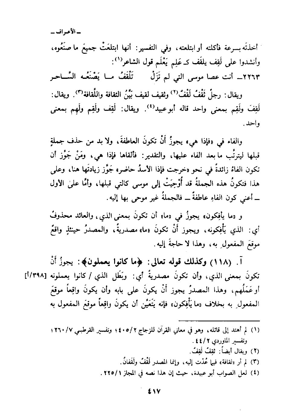 وكذلك قوله تعالى: {مَا كَانُواْ يَعْمَلُونَ} : يجوزُ أنْ تكونَ بمعنى الذي، وأن تكونَ مصدريةً أي: وبَطَل الذي/ كانوا يعملونه أو عَمَلُهم، وهذا المصدرُ يجوز أَنْ يكونَ على بابه وأن يكونَ واقِعاً موقعَ المفعولِ به بخلاف «ما يَأفِكون» فإنه يَتَعَيَّن أن يكونَ واقِعاً موقعَ المفعول به