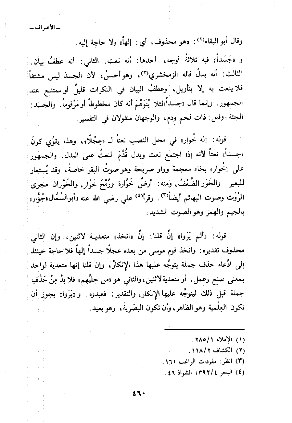 قوله: {لَّهُ خُوَارٌ} في محل النصب نعتاً ل «عِجْلاً» ، وهذا يقوِّي كونَ «جسداً» نعتاً لأنه إذا اجتمع نعت وبدل قُدَّمَ النعتُ على البدل. والجمهور على «خُوار» بخاء معجمة وواو صريحة وهو صوتُ البقر خاصةً، وقد يُستعار للبعير. والخَوَر الضَّعْفُ، ومنه: أرضٌ خَوَّارة ورُمْحٌ خَوَّار، والخَوْران مجرى الرَّوْث وصوت البهائم أيضاً. وقرأ علي رضي الله عنه وأبو السَّمَّال «جُُؤَار» بالجيم والهمز وهو الصوت الشديد.
