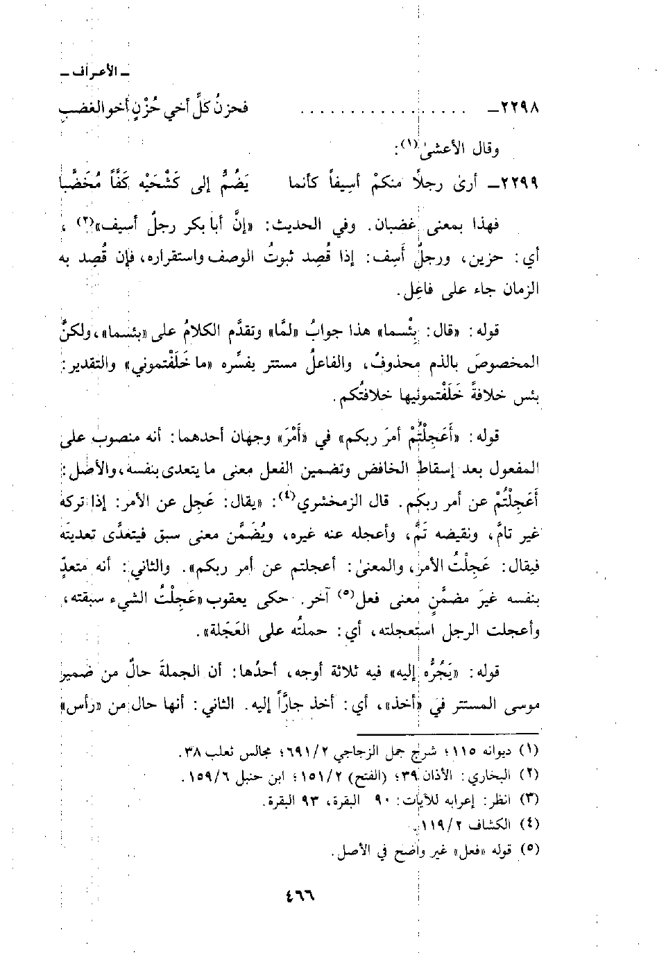 2299 - أرى رجلاً منكمْ أسِيفاً كأنما ... يَضُمُّ إلى كَشْحَيْه كَفَّاً مُخَضَّبا