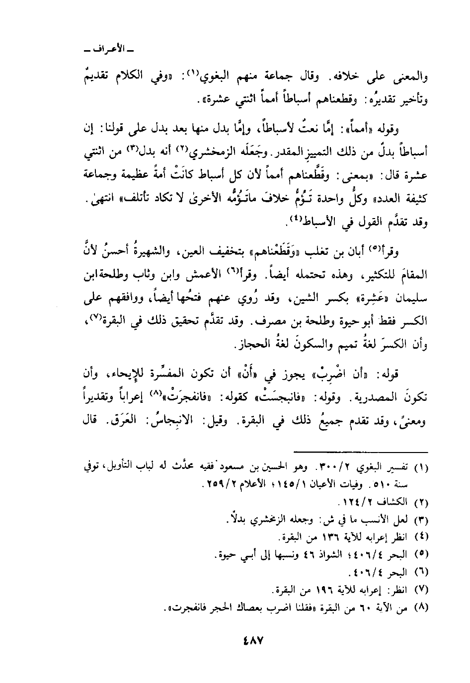 والمعنى على خلافه. وقال جماعة منهم البغوي: «وفي الكلام تقديمٌ وتأخير تقديرُه: وقطعناهم أسباطاً أمماً اثنتي عشرة» .
