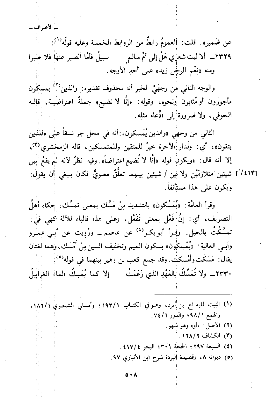 والوجه الثاني من وجهَيْ الخبر أنه محذوف تقديره: والذين يمسكون مأجورون أو مُثابون ونحوه، وقوله: «إنَّا لا نضيع» جملةٌ اعتراضية، قاله الحوفي، ولا ضرورة إلى ادِّعاء مثلِه.