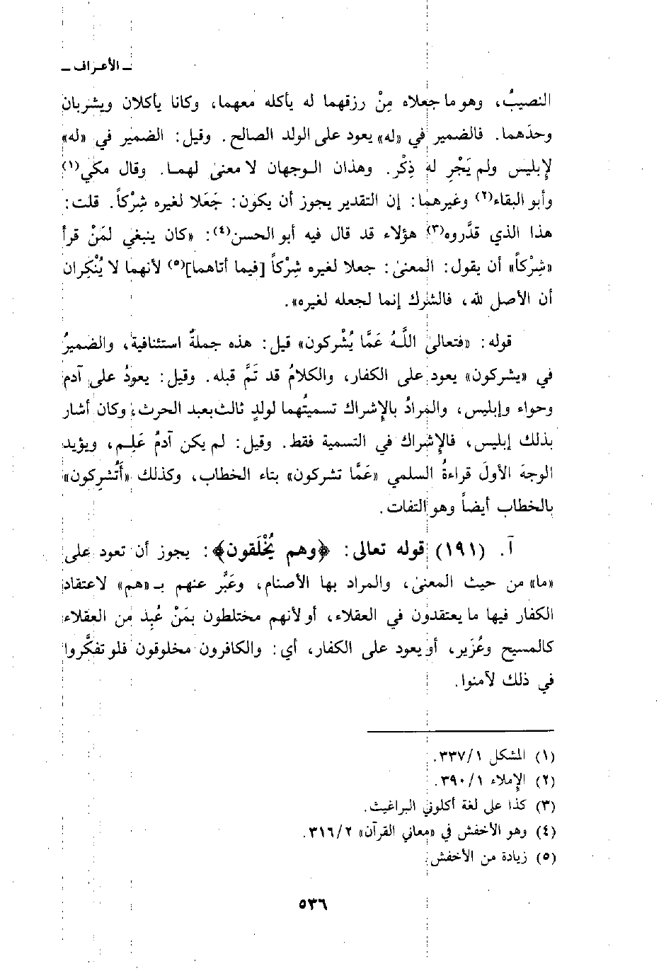 قوله: {فَتَعَالَى الله عَمَّا يُشْرِكُونَ} قيل: هذه جملةٌ استئنافية، والضميرُ في «يشركون» يعود على الكفار، والكلامُ قد تَمَّ قبله. وقيل: يعودُ على آدم وحواء وإبليس، والمرادُ بالإِشراك تسميتهُما لولدٍ ثالث بعبد الحرث، وكان أشار بذلك إبليس، فالإِشراك في التسمية فقط. وقيل: لم يكن آدمُ عَلِم، ويؤيد الوجهَ الأولَ قراءةُ السلمي «عَمَّا تشركون» بتاء الخطاب، وكذلك «أَتُشرِكون» بالخطاب أيضاً وهو التفات.