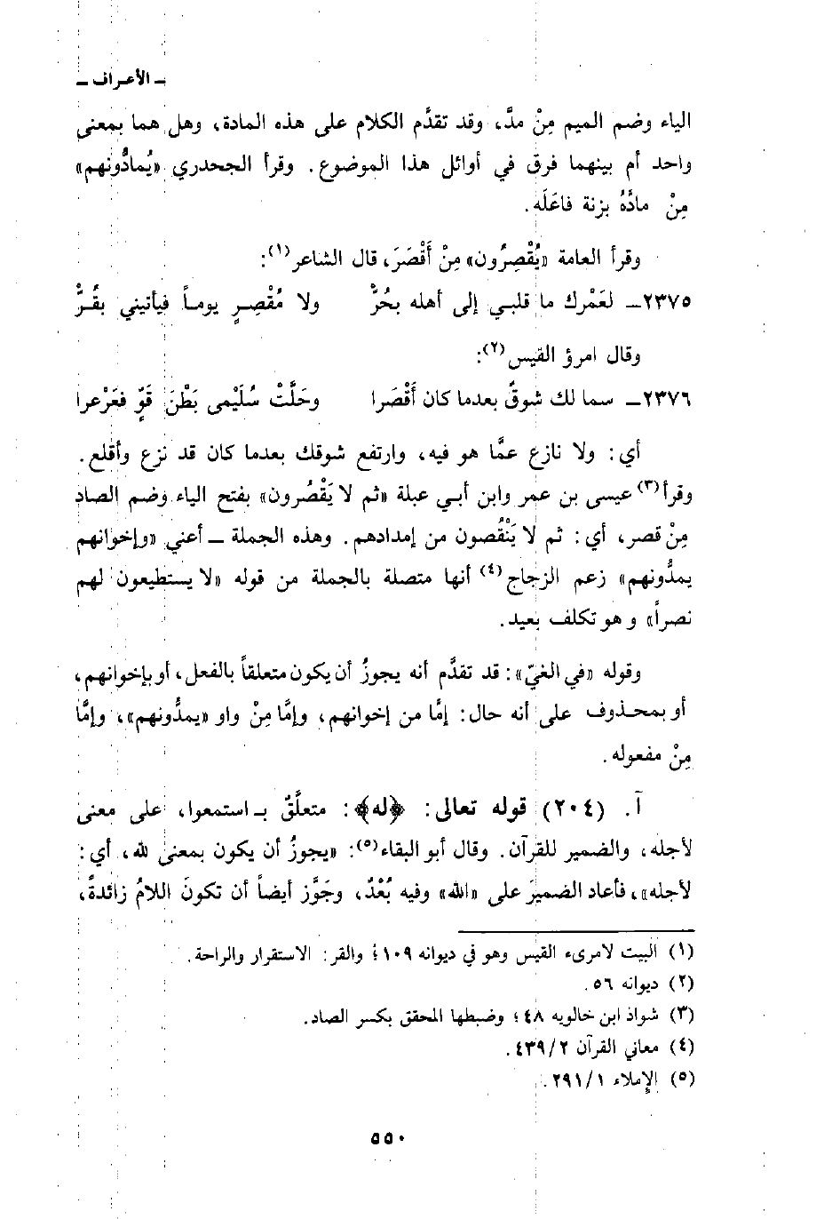 2376 - سما لك شوقٌ بعدما كان أَقْصَرا ... وحَلَّتْ سُلَيْمى بَطْنَ قَوٍّ فعَرْعرا