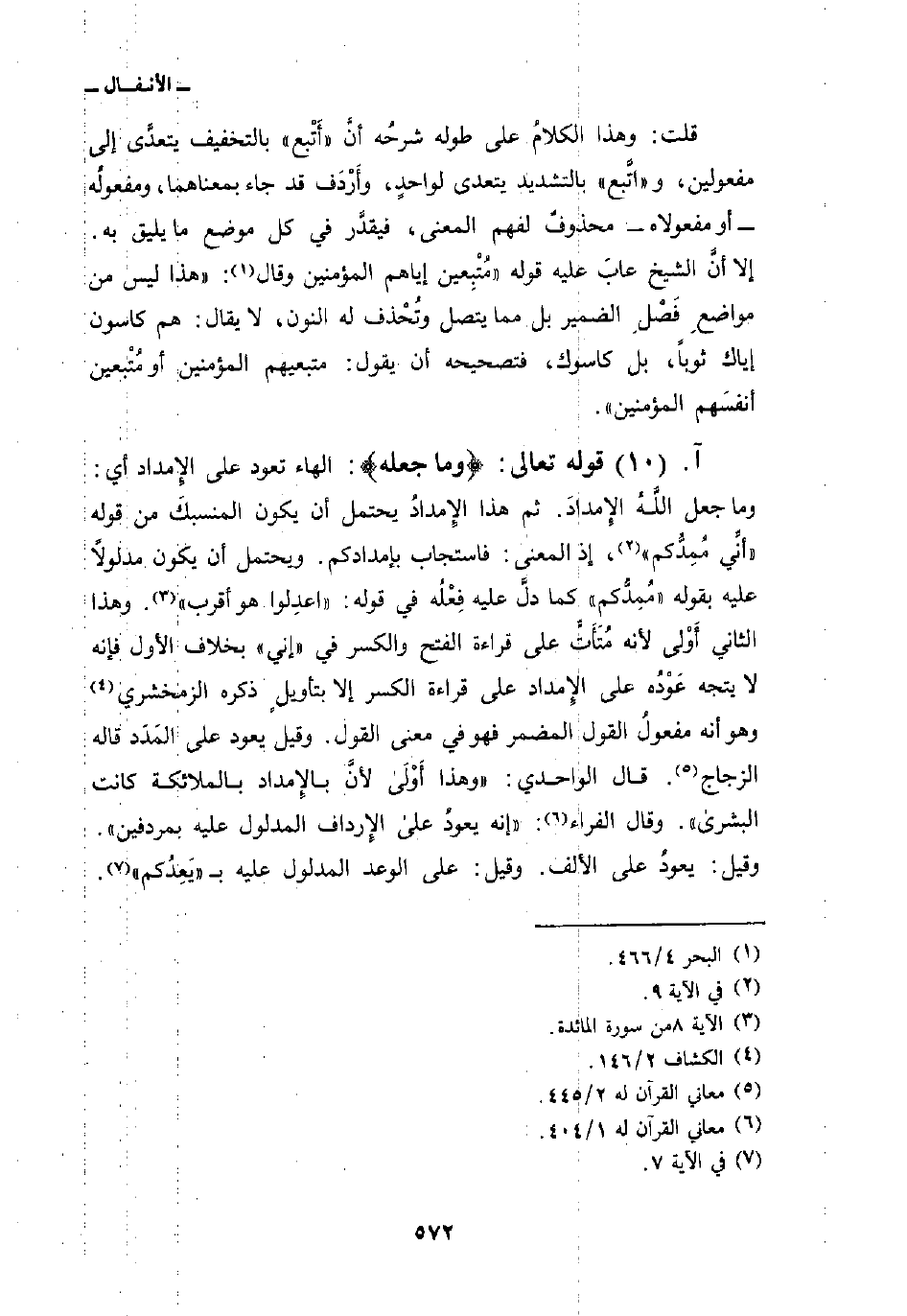 قوله تعالى: {وَمَا جَعَلَهُ} : الهاء تعود على الإِمداد أي: وما جعل اللهُ الإِمدادَ. ثم هذا الإِمدادُ يحتمل أن يكون المنسبكَ من قوله {أَنِّي مُمِدُّكُمْ} [الأنفال: 9] ، إذ المعنى: فاستجاب بإمدادكم. ويحتمل أن يكون مدلولاً عليه بقوله «مُمِدُّكم» كما دلَّ عليه فِعْلُه في قوله: {اعدلوا هُوَ أَقْرَبُ} [المائدة: 8] . وهذا الثاني أَوْلى لأنه مُتَأَتٍّ على قراءة الفتح والكسر في «إني» بخلاف الأول فإنه لا يتجه عَوْدُه على الإِمداد على قراءة الكسر إلا بتأويلٍ ذكره الزمخشري وهو أنه مفعولُ القول المضمر فهو في معنى القول. وقيل يعود على المَدَد قاله الزجاج. قال الواحدي: «وهذا أَوْلَى لأنَّ بالإِمداد بالملائكة كانت البشرى» . وقال الفراء: «إنه يعودُ على الإِرداف المدلول عليه بمردفين» . وقيل: يعودُ على الألف. وقيل: على الوعد المدلول عليه ب {يَعِدُكُمُ} [الأنفال: 7] .