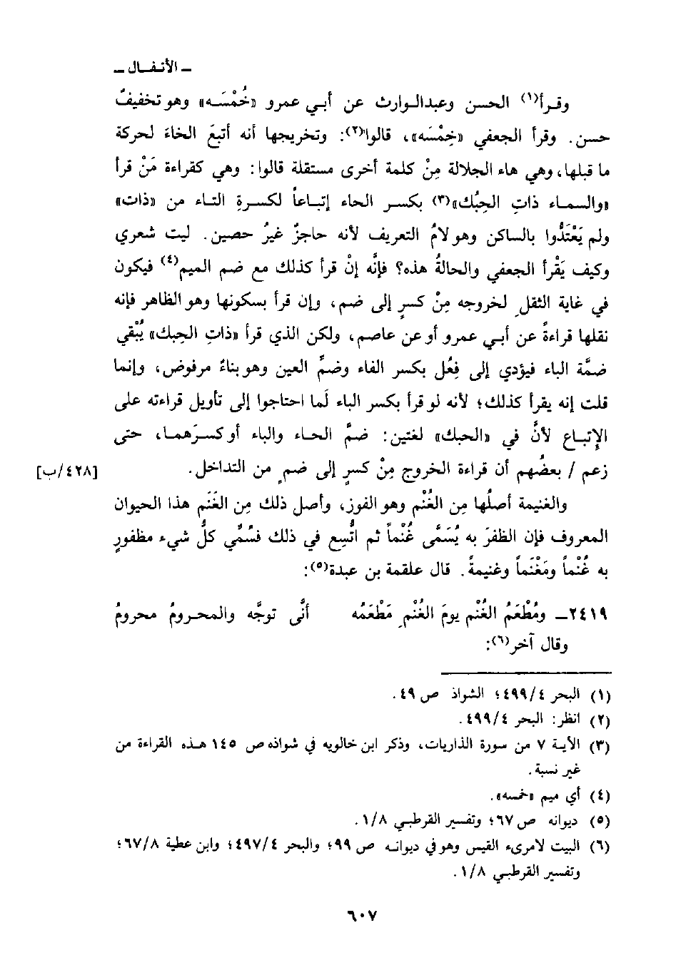 2419 - ومُطْعَمُ الغُنْم يومَ الغُنْمِ مَطْعَمُه ... أنَّى توجَّه والمحرومُ محرومُ