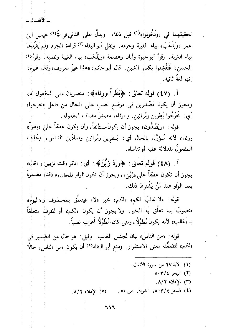 قوله تعالى: {بَطَراً وَرِئَآءَ} : منصوبان على المفعول له، ويجوز أن يكونا مَصْدرين في موضع نصبٍ على الحال من فاعل «خرجوا» أي: خَرَجُوا بَطِرين ومُرائين. و «رئاء» مصدرٌ مضاف لمفعولِه.
