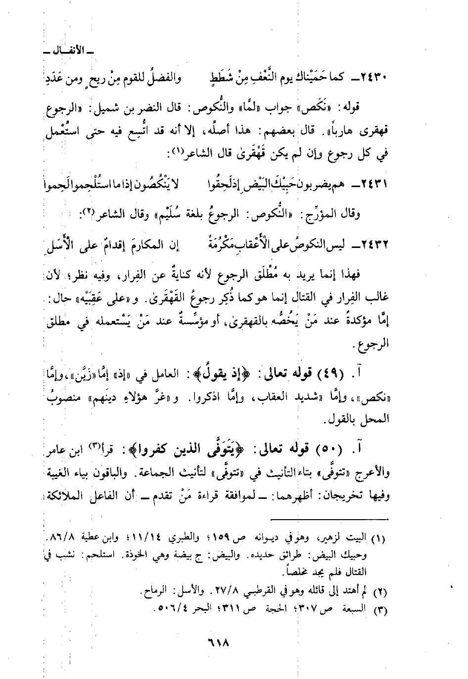 2432 - ليس النكوصُ على الأَعْقابِ مَكْرُمَةً ... إن المكارمَ إقدامٌ على الأَسَلِ