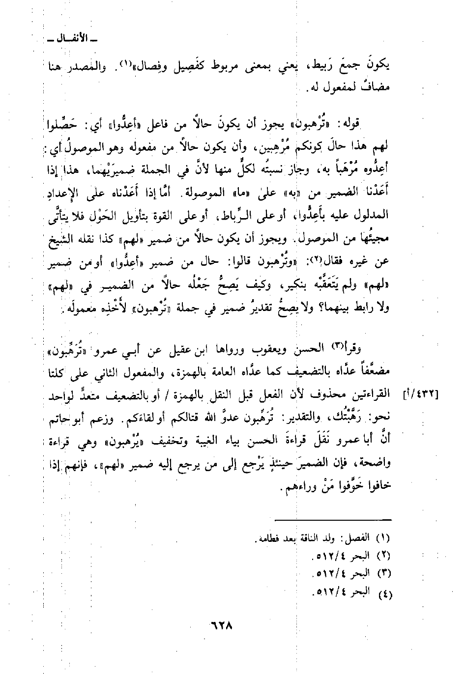 قوله: «تُرْهبون» يجوز أن يكونَ حالاً من فاعل «أعِدُّوا» أي: حَصِّلوا لهم هذا حالَ كونكم مُرْهِبين، وأن يكون حالاً من مفعوله وهو الموصولُ أي: أعِدُّوه مُرْهَباً به، وجاز نسبتُه لكلٍّ منها لأنَّ في الجملة ضميرَيْهما، هذا إذا أَعَدْنا الضمير من «به» على «ما» الموصولة. أمَّا إذا أَعَدْناه على الإِعدادِ المدلول عليه بأَعِدُّوا، أو على الرِّباط، أو على القوة بتأويل الحَوْل فلا يتأتَّى مجيئُها من الموصول. ويجوز أن يكون حالاً من ضمير «لهم» كذا نقله الشيخ عن غيره فقال: «وتُرْهبون قالوا: حال من ضمير» أعِدُّوا «أو من ضمير» لهم «ولم يَتَعَقَّبْه بنكير، وكيف يَصِحُّ جَعْلُه حالاً من الضمير في» لهم «ولا رابط بينهما؟ ولا يصِحُّ تقديرُ ضمير في جملة» تُرْهبون «لأَخْذِه معمولَه.