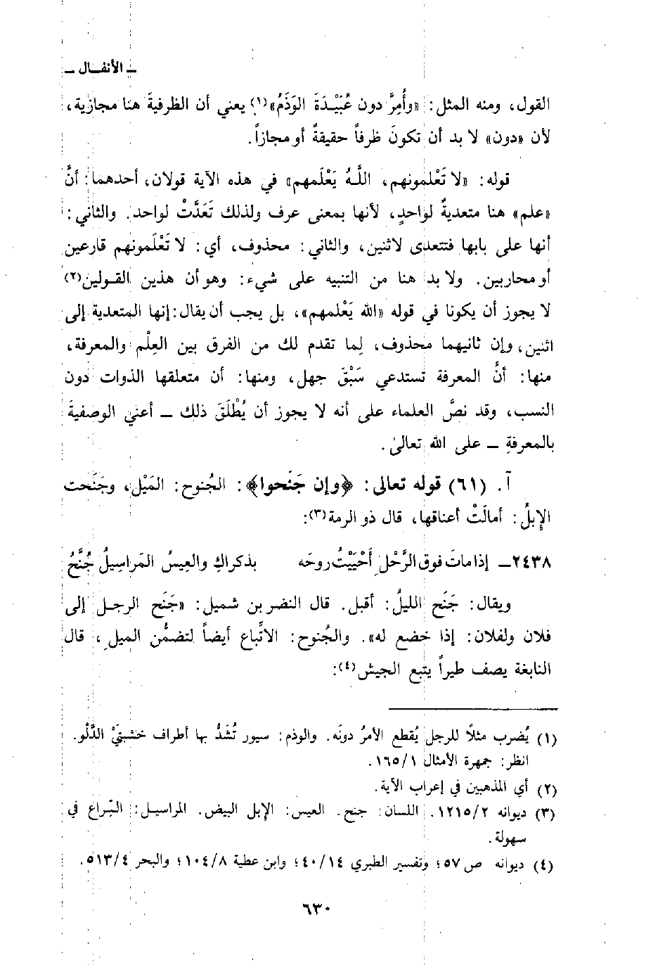 قوله: {لاَ تَعْلَمُونَهُمُ الله يَعْلَمُهُمْ} في هذه الآية قولان، أحدهما: أنَّ» علم «هنا متعديةٌ لواحدٍ، لأنها بمعنى عرف ولذلك تَعَدَّتْ لواحد. والثاني: أنها على بابها فتتعدى لاثنين، والثاني: محذوف، أي: لا تَعْلَمونهم قارعين أو محاربين. ولا بد هنا من التنبيه على شيء: وهو أن هذين القولين لا يجوز أن يكونا في قوله» الله يَعْلمهم «، بل يجب أن يقال: إنها المتعدية إلى اثنين، وإن ثانيهما محذوف، لِما تقدم لك من الفرق بين العِلْم والمعرفة، منها: أنَّ المعرفة تستدعي سَبْقَ جهل، ومنها: أن متعلقها الذوات دون النسب، وقد نصَّ العلماء على أنه لا يجوز أن يُطْلَقَ ذلك أعني الوصفيةَ بالمعرفةِ على الله تعالى.
