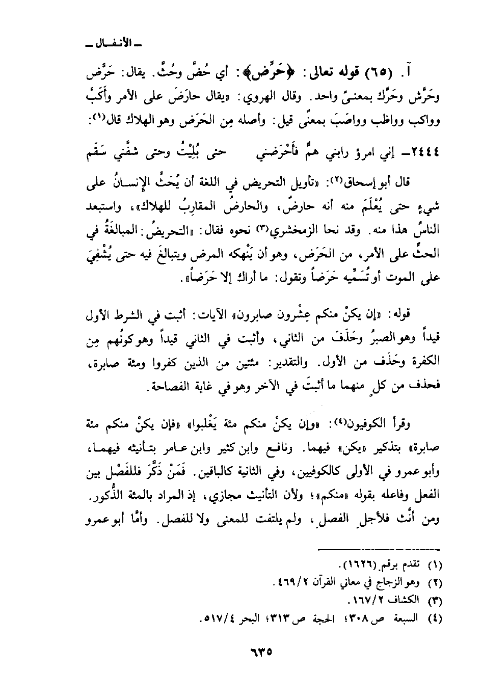 قال أبو إسحاق:» تأويل التحريض في اللغة أن يُحَثَّ الإِنسانُ على شيءٍ حتى يُعْلَمَ منه أنه حارضٌ، والحارضُ المقارِبُ للهلاك «، واستبعد الناسُ هذا منه. وقد نحا الزمخشري نحوه فقال:» التحريضُ: المبالغَةُ في الحثِّ على الأمر، من الحَرَض، وهو أن يَنْهكه المرض ويتبالغَ فيه حتى يُشْفِيَ على الموت أو تُسَمِّيه حَرَضاً وتقول: ما أراك إلا حَرَضاً «.