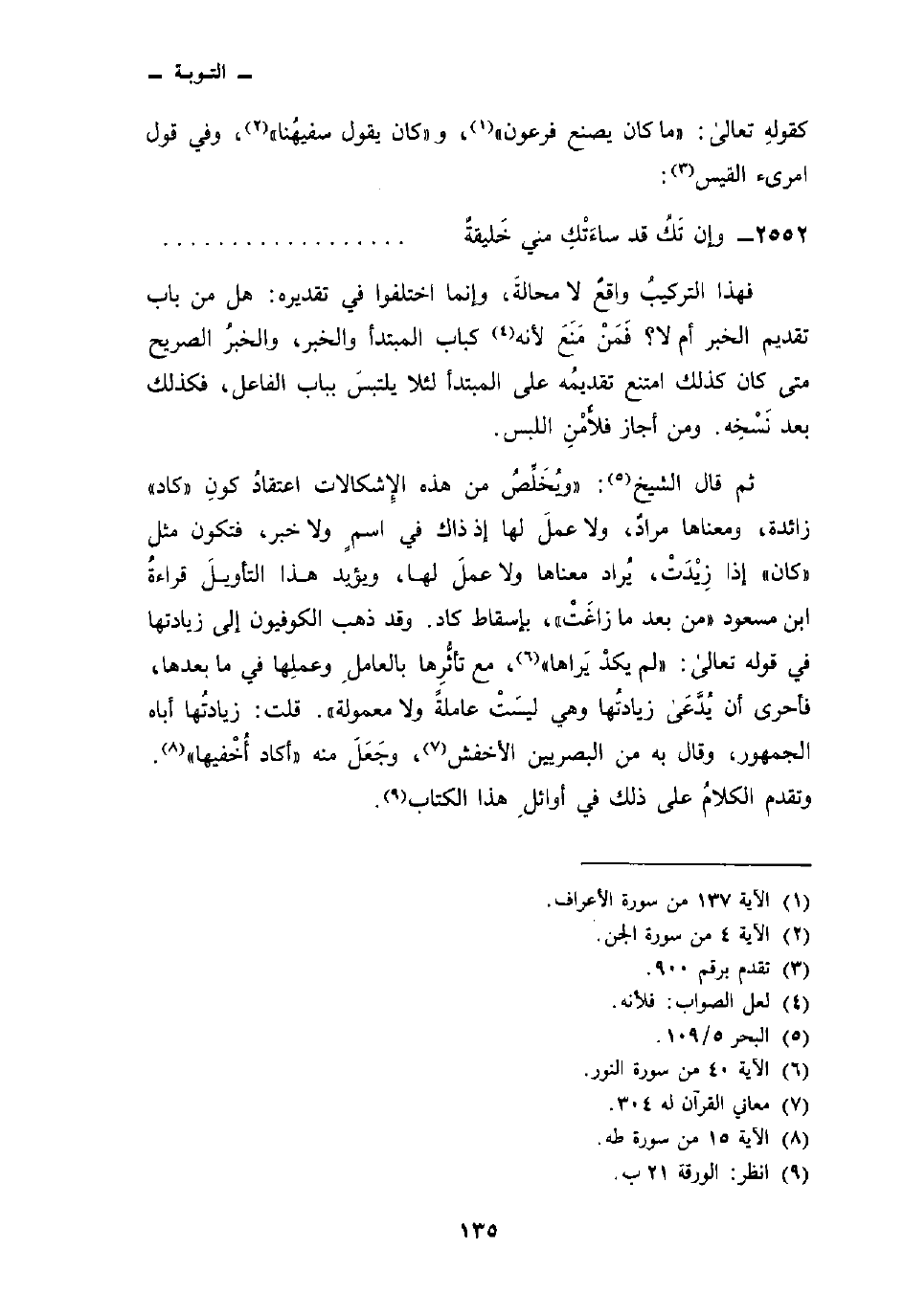 ثم قال الشيخ:» ويُخَلِّصُ من هذه الإِشكالات اعتقادُ كونِ «كاد» زائدة، ومعناها مرادٌ، ولا عملَ لها إذ ذاك في اسمٍ ولا خبر، فتكون مثل «كان» إذا زِيْدَتْ، يُراد معناها ولا عملَ لها، ويؤيد هذا التأويلَ قراءةُ ابن مسعود «من بعد ما زاغَتْ» ، بإسقاط كاد، وقد ذهب الكوفيون إلى زيادتها في قوله تعالى: {لَمْ يَكَدْ يَرَاهَا} [النور: 40] ، مع تأثُّرِها بالعاملِ وعملِها في ما بعدها، فأحرى أن يدعى زيادتُها وهي ليسَتْ عاملةً ولا معمولة «. قلت: زيادتُها أباه الجمهور، وقال به من البصريين الأخفش، وجَعَلَ منه {أَكَادُ أُخْفِيهَا} [طه: 15] . وتقدم الكلامُ على ذلك في أوائلِ هذا الكتاب.