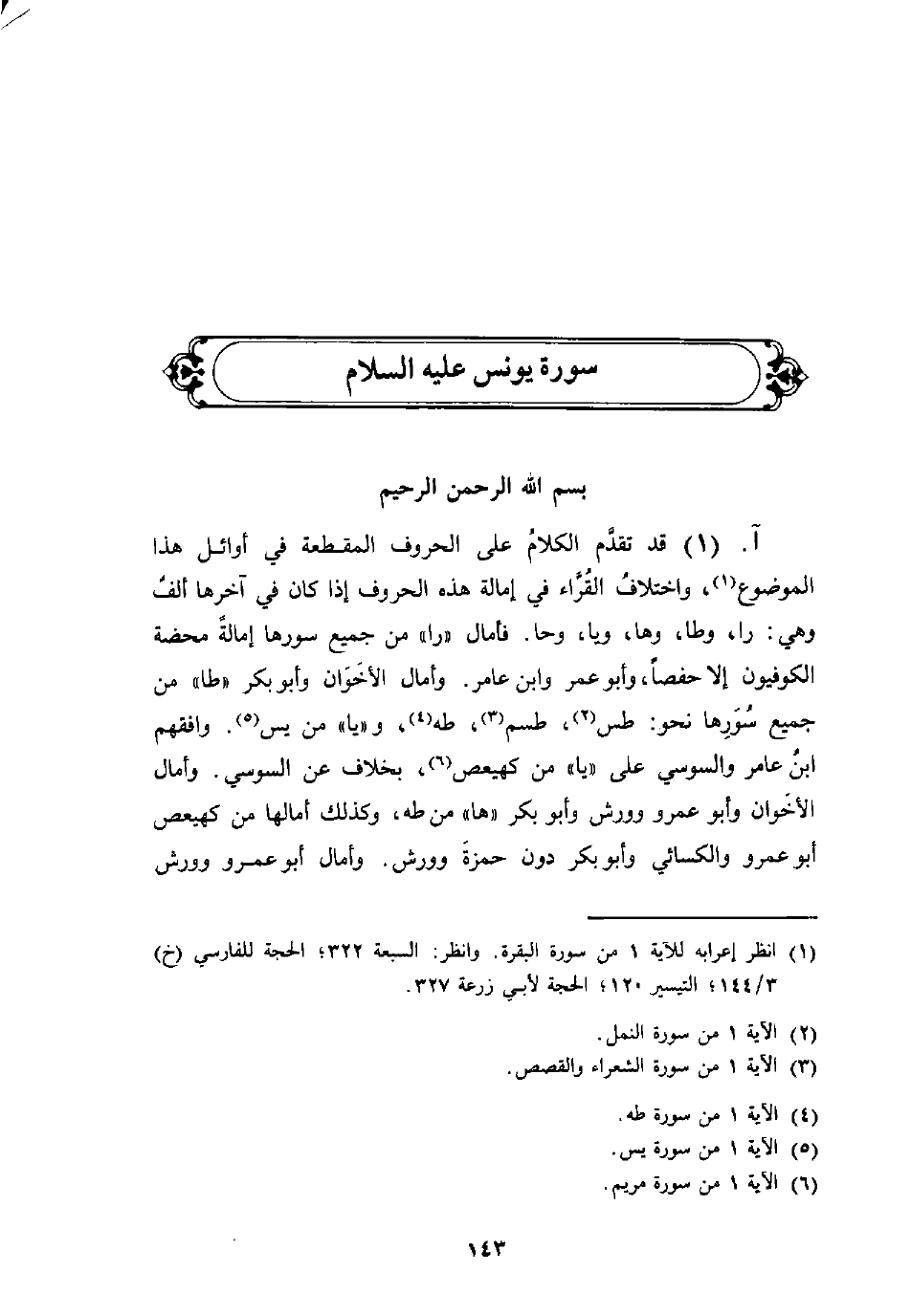 قد تقدَّم الكلامُ على الحروف المقطعة في أوائل هذا الموضوع، واختلافُ القُرَّاء في إمالة هذه الحروف إذا كان في آخرها ألفٌ وهي: را، وطا، وها، ويا، وحا. فأمال «را» من جميع سورها إمالةً محضة الكوفيون إلا حفصاً، وأبو عمر وأبن عامر. وأمال الأخَوَان وأبو بكر «طا» من جميع سُوَرِها نحو: طس، طسم، طه، و «يا» من يس. وافقهم ابنُ عامر والسوسي على «يا» من كهيعص، بخلاف عن السوسي. وأمال الأخَوان وأبو عمرو وورش وأبو بكر «ها» من طه، وكذلك أمالها من كهيعص أبو عمرو والكسائي وأبو بكر دون حمزةَ وورش. وأمال أبو عمرو وورش