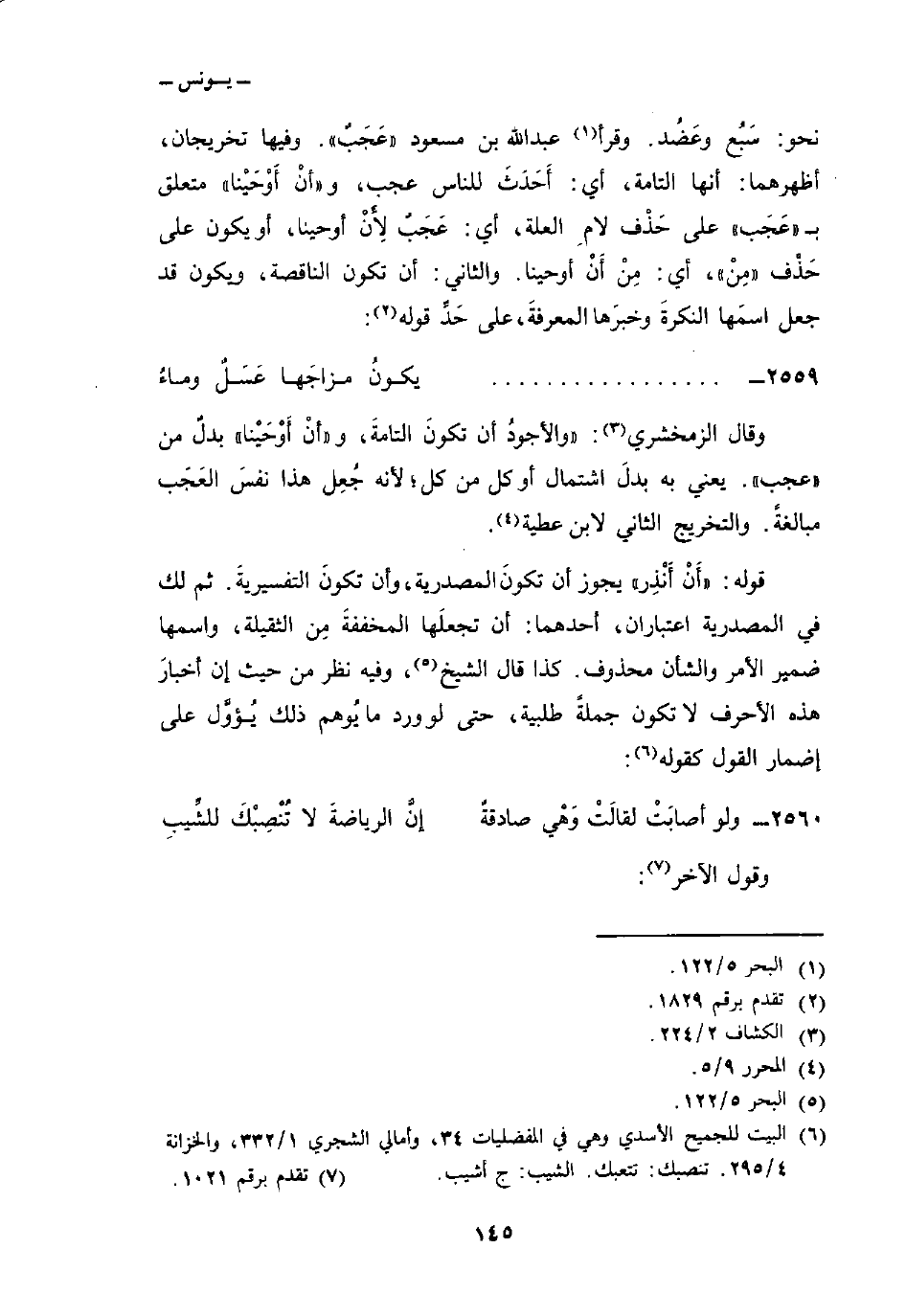 وقال الزمخشري: «والأجودُ أن تكونَ التامةَ، و» أنْ أَوْحَيْنا «بدلٌ من» عجب «. يعني به بدلَ اشتمال أو كل من كل؛ لأنه جُعِل هذا نفسَ العَجَب مبالغةً. والتخريج الثاني لابن عطية.