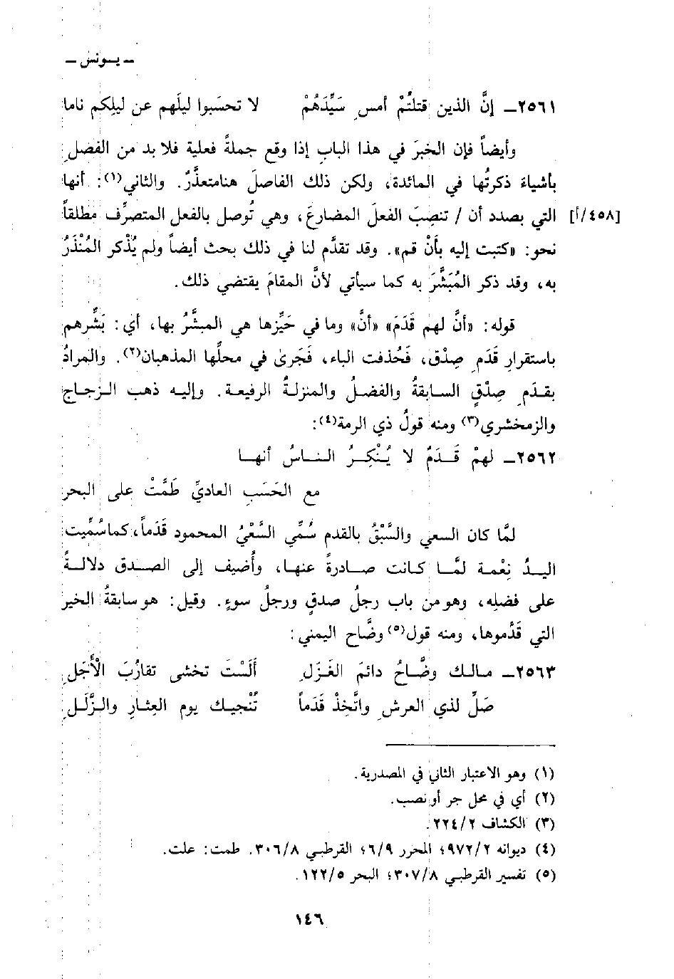 2562 - لهمْ قَدَمٌ لا يُنْكِرُ الناسُ أنها ... مع الحَسَبِ العاديِّ طَمَّتْ على البحر ... لمَّا كان السعي والسَّبْقُ بالقدم سُمِّي السَّعْيُ المحمود قَدَماً، كما سُمِّيت اليدُ نِعْمة لمَّا كانت صادرةً عنها، وأُضيف إلى الصدق دلالةً على فضلِه، وهو من باب رجلُ صدقٍ ورجلُ سوءٍ. وقيل: هو سابقةُ الخير التي قَدَّموها، ومنه قول وضَّاح اليمني: