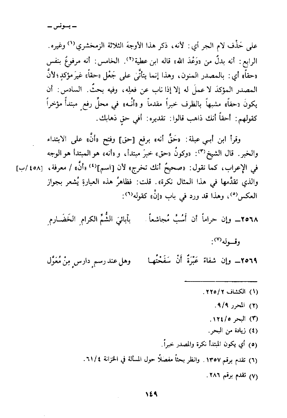 على حَذْف لام الجر أي: لأنه، ذكر هذا الأوجهَ الثلاثة الزمخشري وغيره. الرابع: أنه بدلٌ من» وَعْدَ الله «قاله ابن عطية. الخامس: أنه مرفوعٌ بنفس» حقاً «أي: بالمصدر المنون، وهذا إنما يتأتى على جَعْل» حقاً «غيرَ مؤكدٍ؛ لأنَّ المصدر المؤكدَ لا عملَ له إلا إذا ناب عن فعلِه، وفيه بحثٌ. السادس: أن يكونَ» حقاً «مشبهاً بالظرف خبراً مقدماً و» أنَّه «في محلِّ رفعٍ مبتدأً مؤخراً كقولهم: أحقاً أنك ذاهب قالوا: تقديره: أفي حقٍ ذهابك.