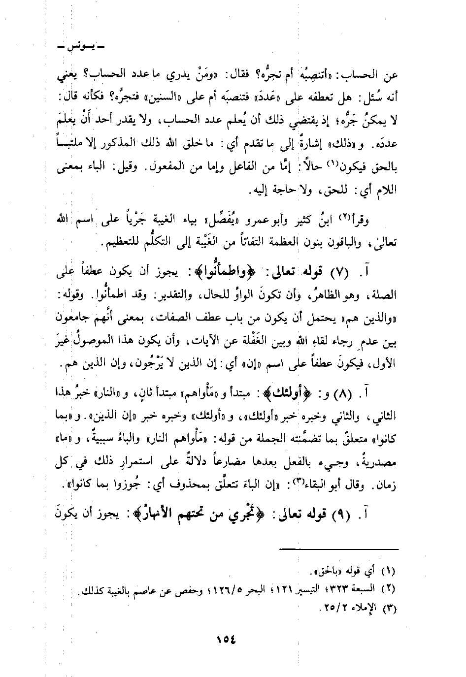 قوله تعالى: {واطمأنوا} : يجوز أن يكون عطفاً على الصلة، وهو الظاهرُ، وأن تكونَ الواوُ للحال، والتقدير: وقد اطمأنُّوا. وقوله: «والذين هم» يحتمل أن يكون من باب عطف الصفات، بمعنى أنَّهم جامعون بين عدم رجال لقاءِ الله وبين الغَفْلة عن الآيات، وأن يكون هذا الموصولُ غيرَ الأول، فيكونَ عطفاً على اسم «إن» أي: إن الذين لا يَرْجُون، وإن الذين هم.