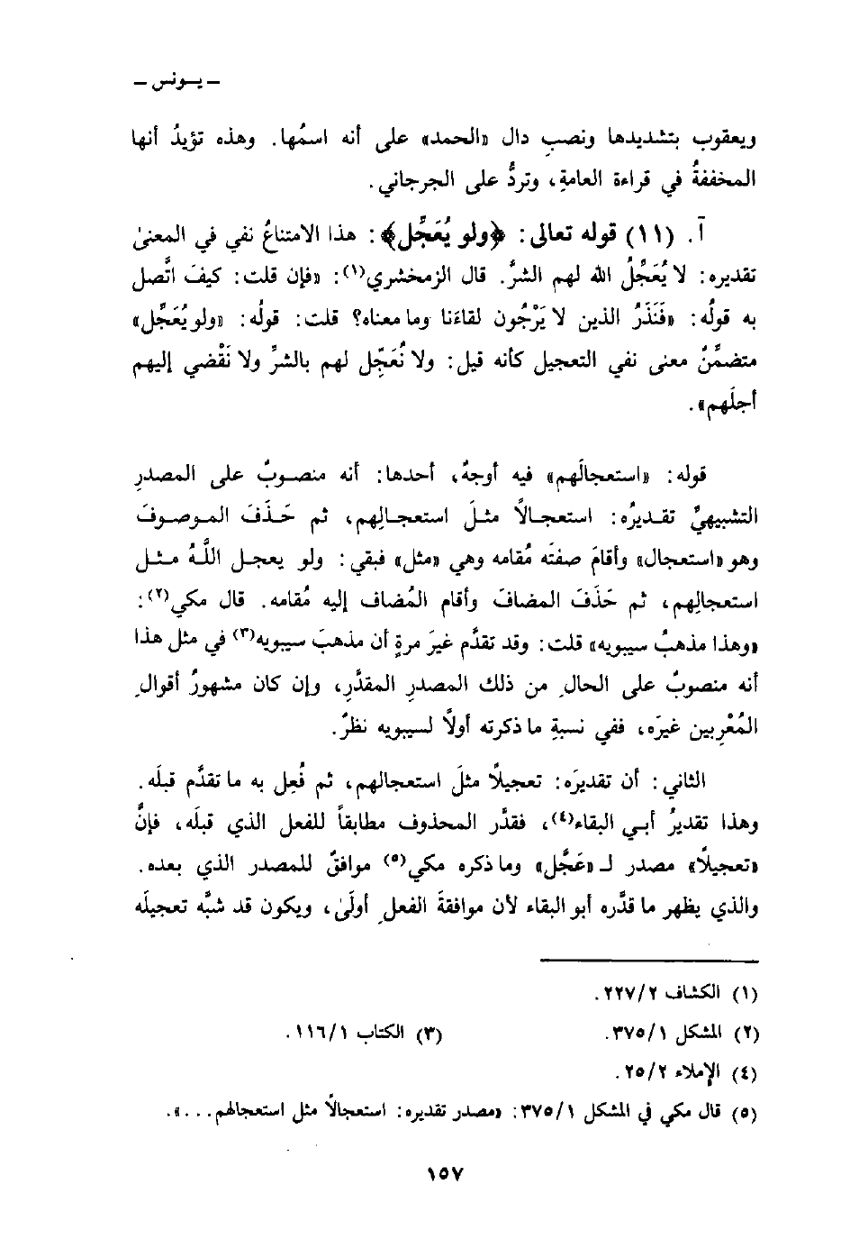 الثاني: أن تقديرَه: تعجيلاً مثلَ استعجالهم، ثم فُعِل به ما تقدَّم قبلَه. وهذا تقديرُ أبي البقاء، فقدَّر المحذوف مطابقاً للفعل الذي قبلَه، فإنَّ» تعجيلاً «مصدر ل» عَجَّل «وما ذكره مكي موافقٌ للمصدر الذي بعده، والذي يظهر ما قدَّره أو البقاء لأن موافقةَ الفعلِ أولى، ويكون قد شبَّه تعجيلَه